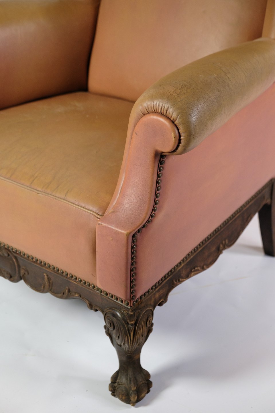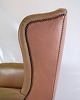 Antik Høj Øreklapstol - Chesterfield - Brunt Sømbeslået Læder - År 1920