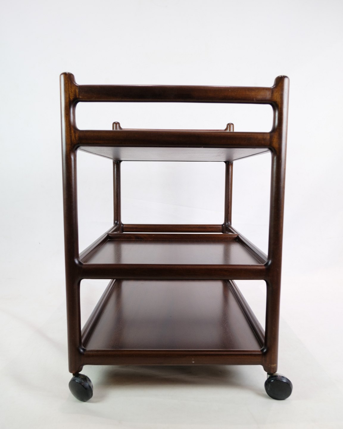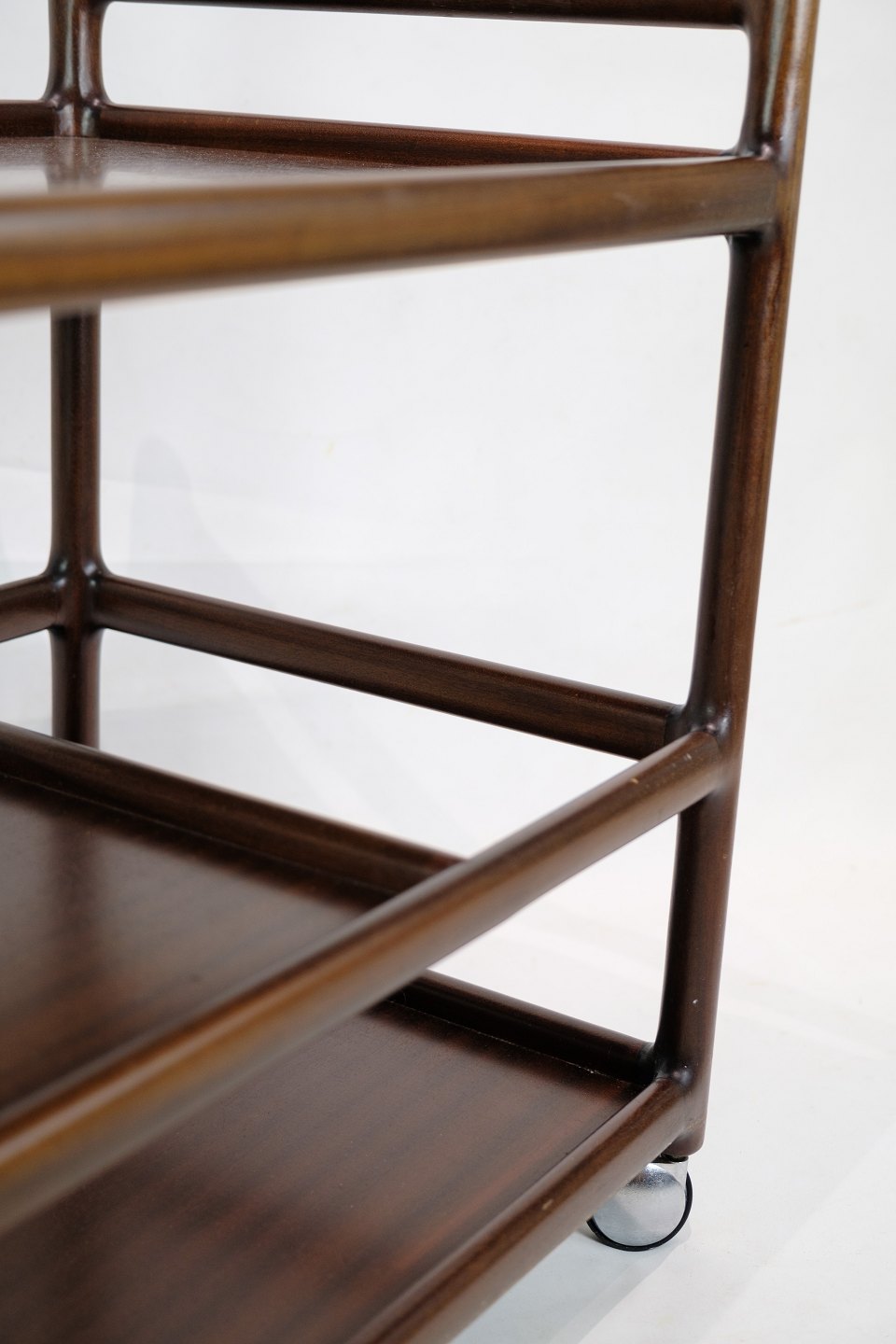 SoldThis serving trolley is an enchanting example of Henning Korch's design aesthetics from the 1960s and was produced by Silkeborg Møbelfabrik. Made of mahogany wood, the carriage exudes a warm and welcoming atmosphere, typical of this era of Danish design.