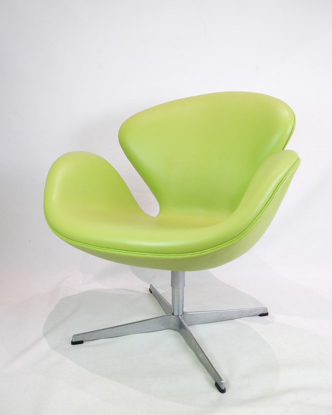 This special edition of the 2007 "Swan" presents a lively and bold choice of lime green leather that adds a freshness to any decor. Arne Jacobsen's vision of creating furniture that is both beautiful and comfortable is fully realized in this chair.