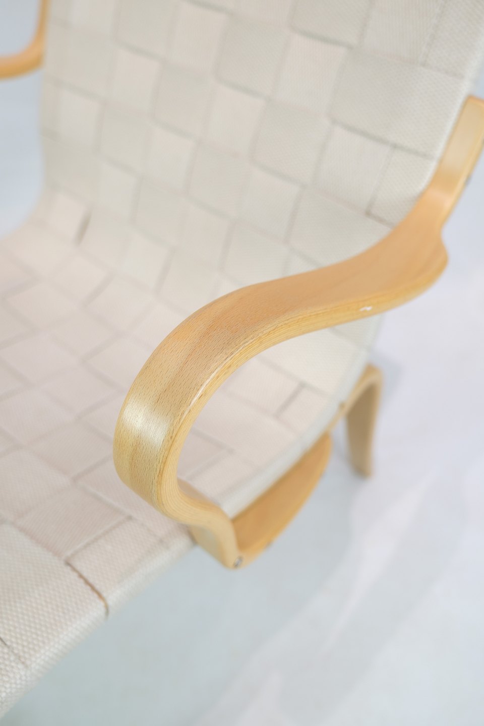 The production of this armchair is handled by Bruno Mathsson International, known for their commitment to maintaining Mathsson's original design and craftsmanship standards.