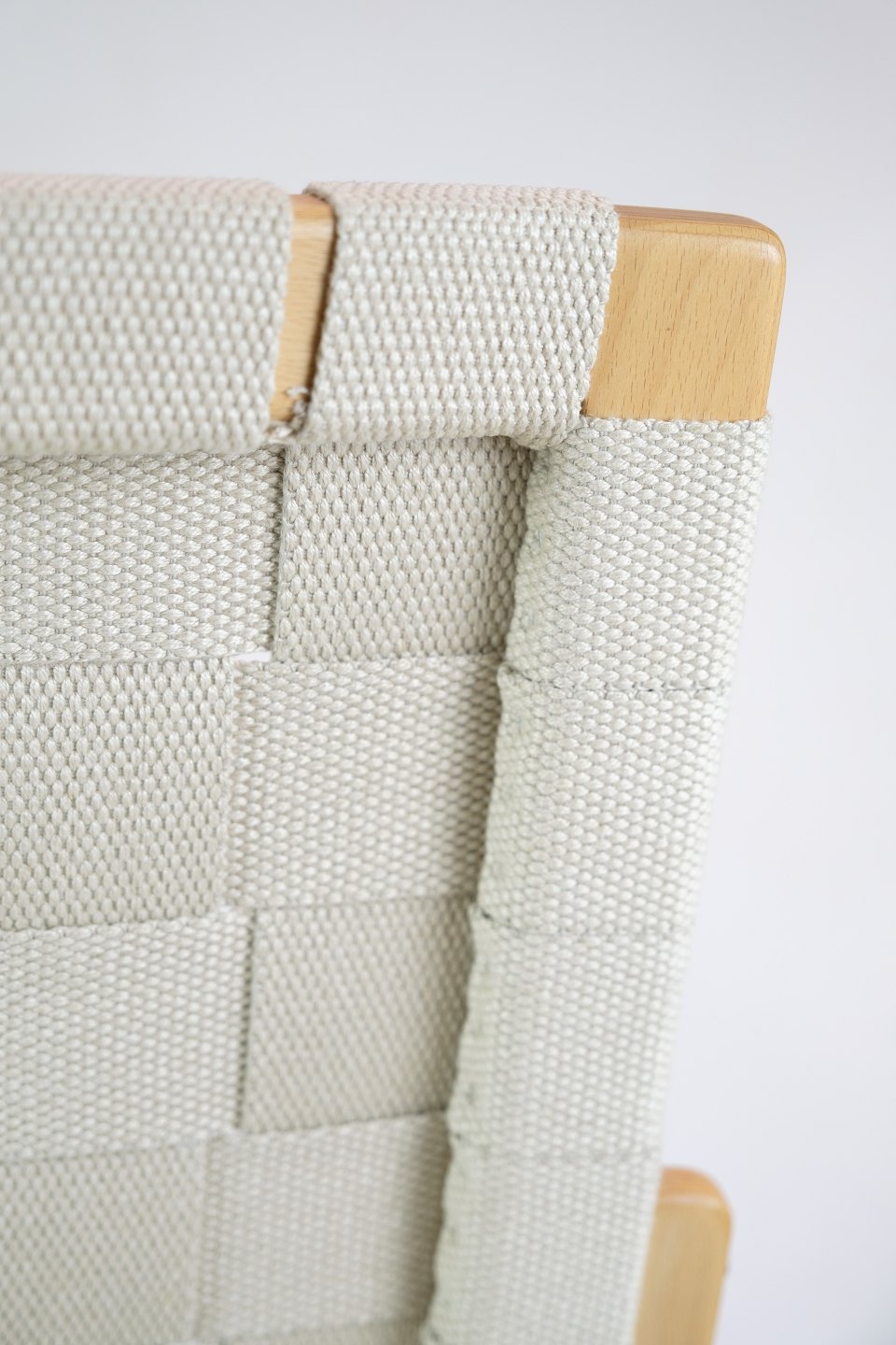 A distinctive feature of this armchair is its seat and back, which are woven from high-quality webbing. This braided construction not only adds an aesthetic dimension to the chair, but also offers a comfortable and supportive seating experience.