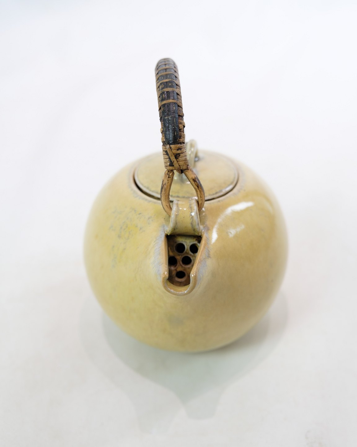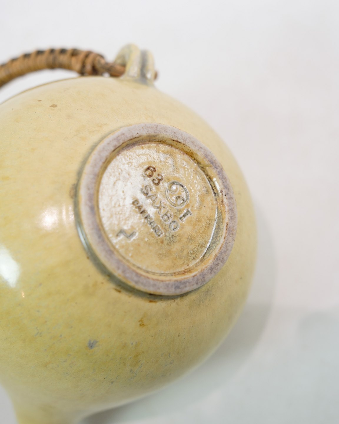 SoldThis teapot is a beautiful example of Danish ceramic craftsmanship, designed by Eva Stæhr Nielsen and produced by Saxbo. Made of stoneware/ceramic, the teapot is beautifully glazed with a light yellowish color that adds a warm and inviting feel to the table.