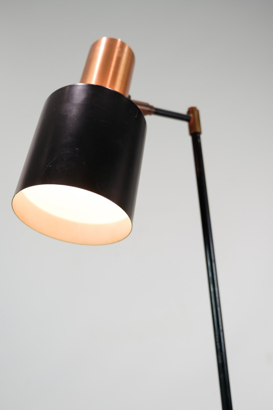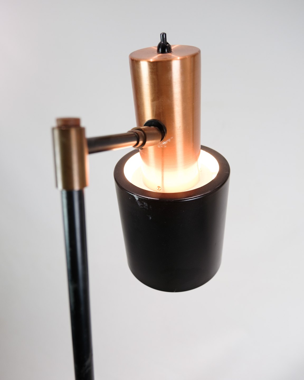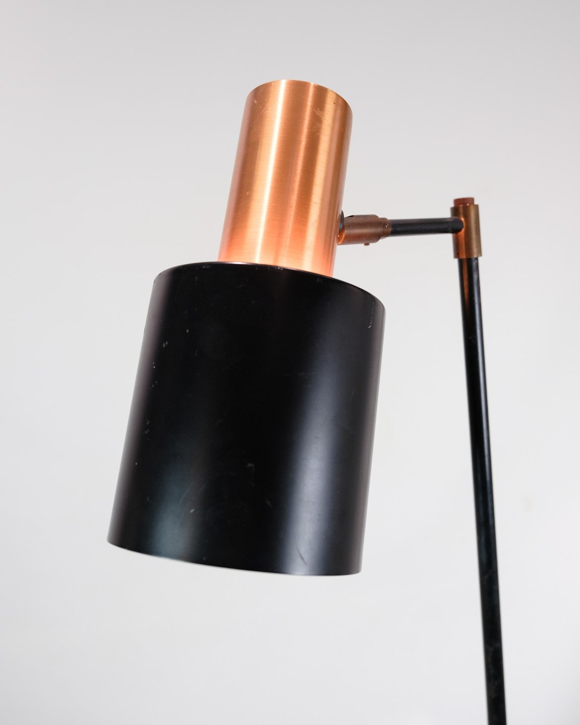 SoldThis floor lamp, known as Model Studio, is a beautiful example of Danish lighting design from the 1970s. The lamp has a black lacquered metal stem with a copper colored base that adds a touch of elegance and warmth to any interior.