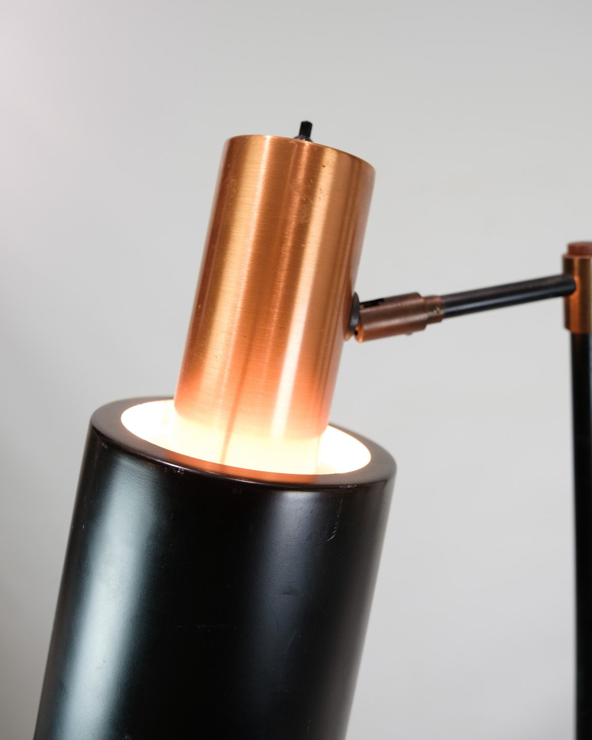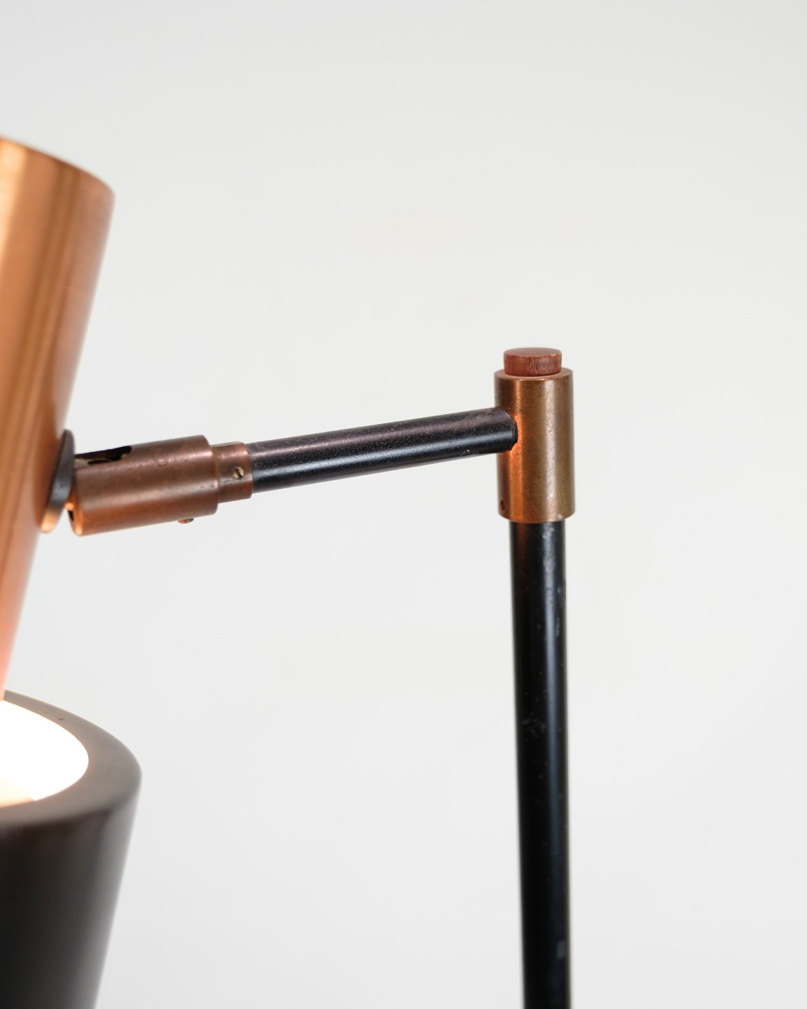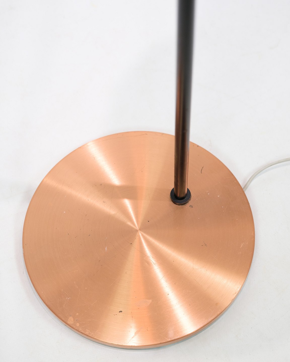 SoldThis floor lamp, known as Model Studio, is a beautiful example of Danish lighting design from the 1970s. The lamp has a black lacquered metal stem with a copper colored base that adds a touch of elegance and warmth to any interior.