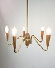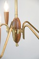 This teak and brass chandelier is a splendid example of Danish design from the 1960s. With its five arms, the chandelier exudes a timeless elegance and a unique mix of warm wood tones and shiny metal.