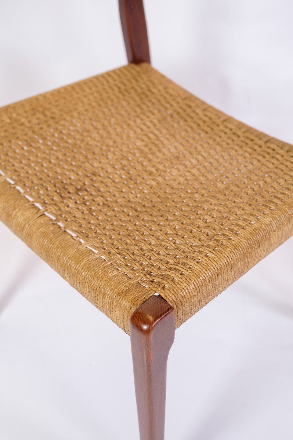 Niels Otto Møller, known for his clean lines and focus on craftsmanship, has designed these chairs with a balance between form and function. The model's slim, curved lines and ergonomic design ensure optimal comfort and support. Møller's design philosophy focuses on highlighting the natural beauty of the materials and creating furniture that is both aesthetically pleasing and practical.