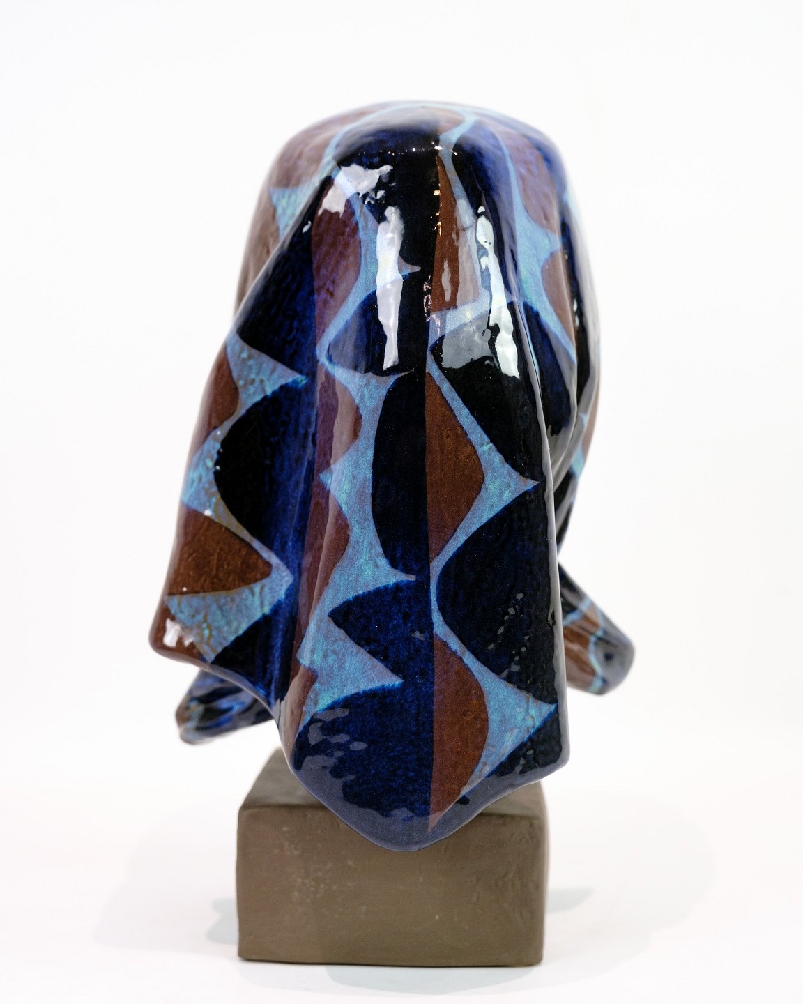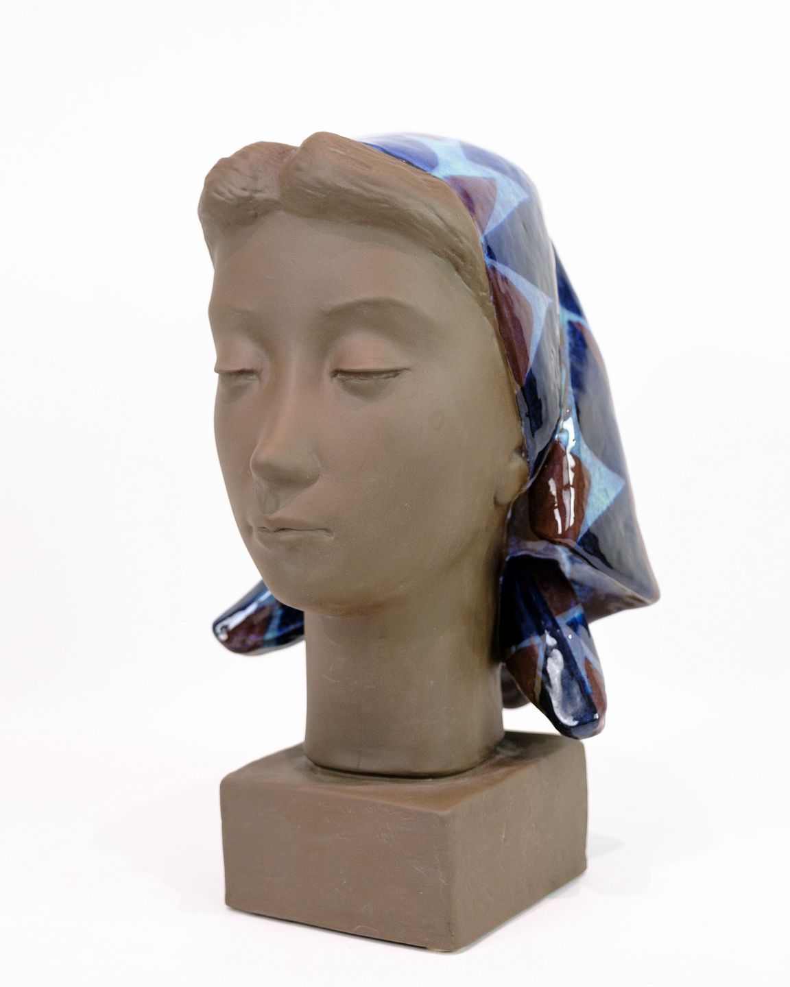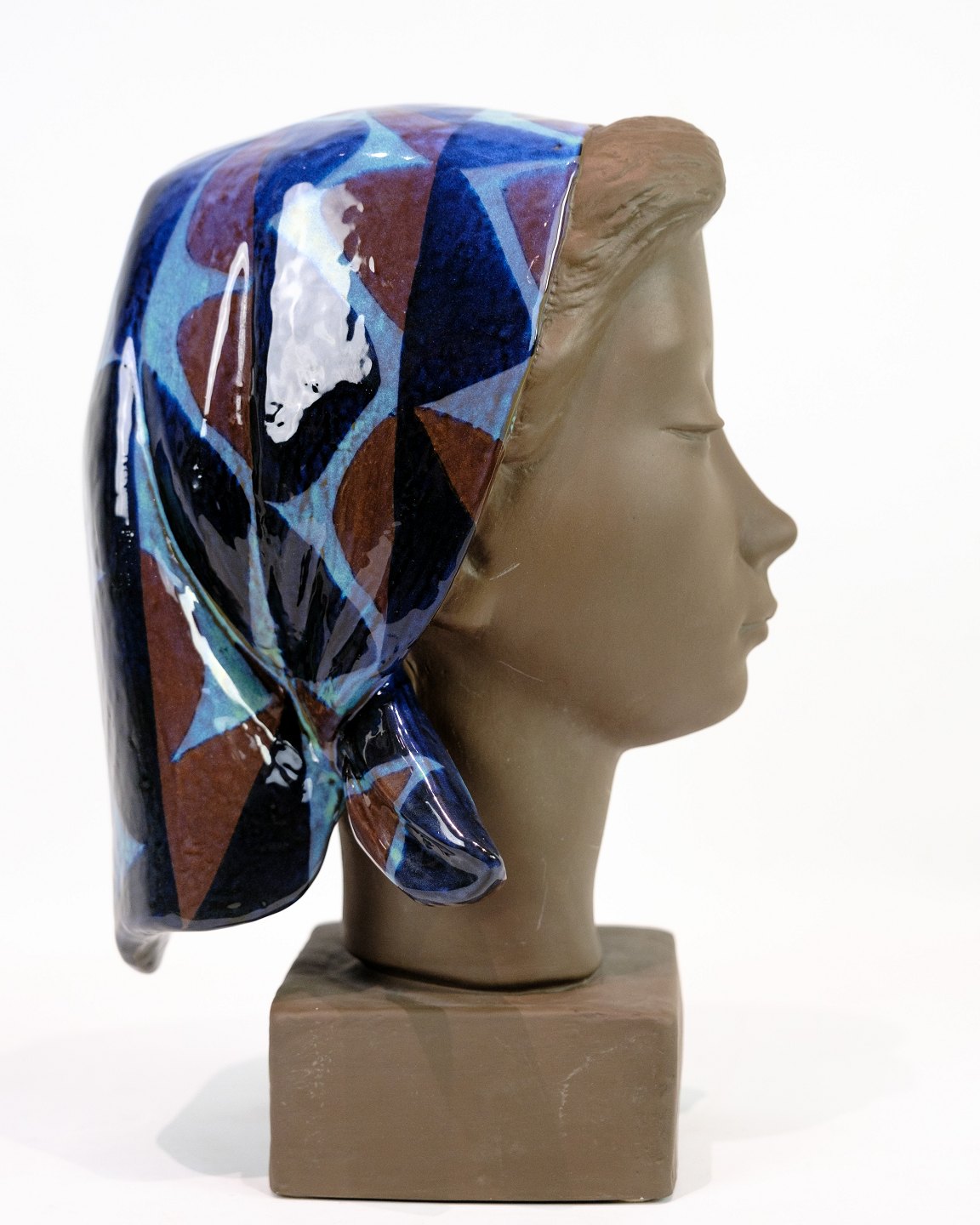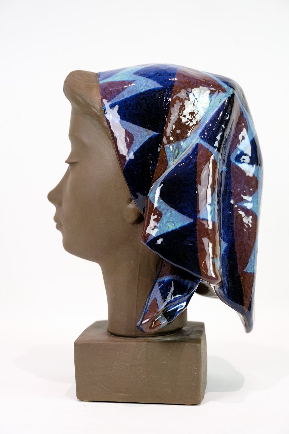 SoldCeramic figure with a motif of a woman's head with a scarf, model No. 159/2897 made with patterned glaze by Johannes Hedegaard.
