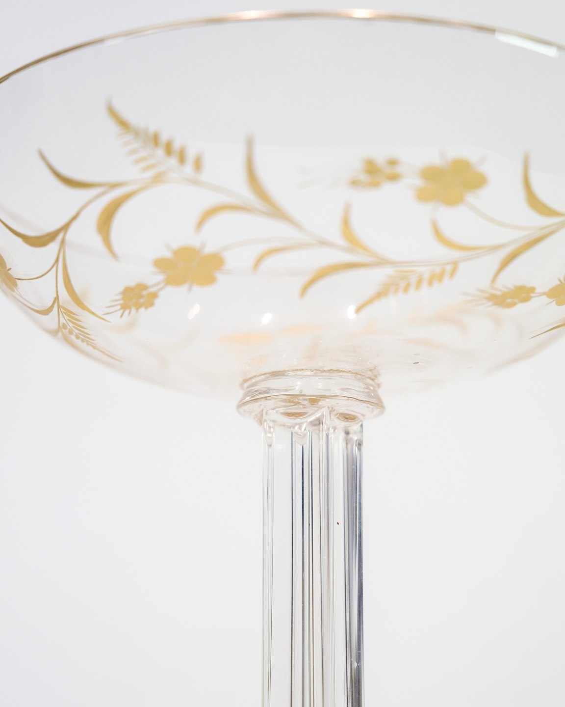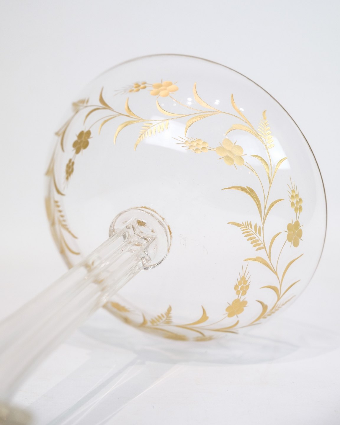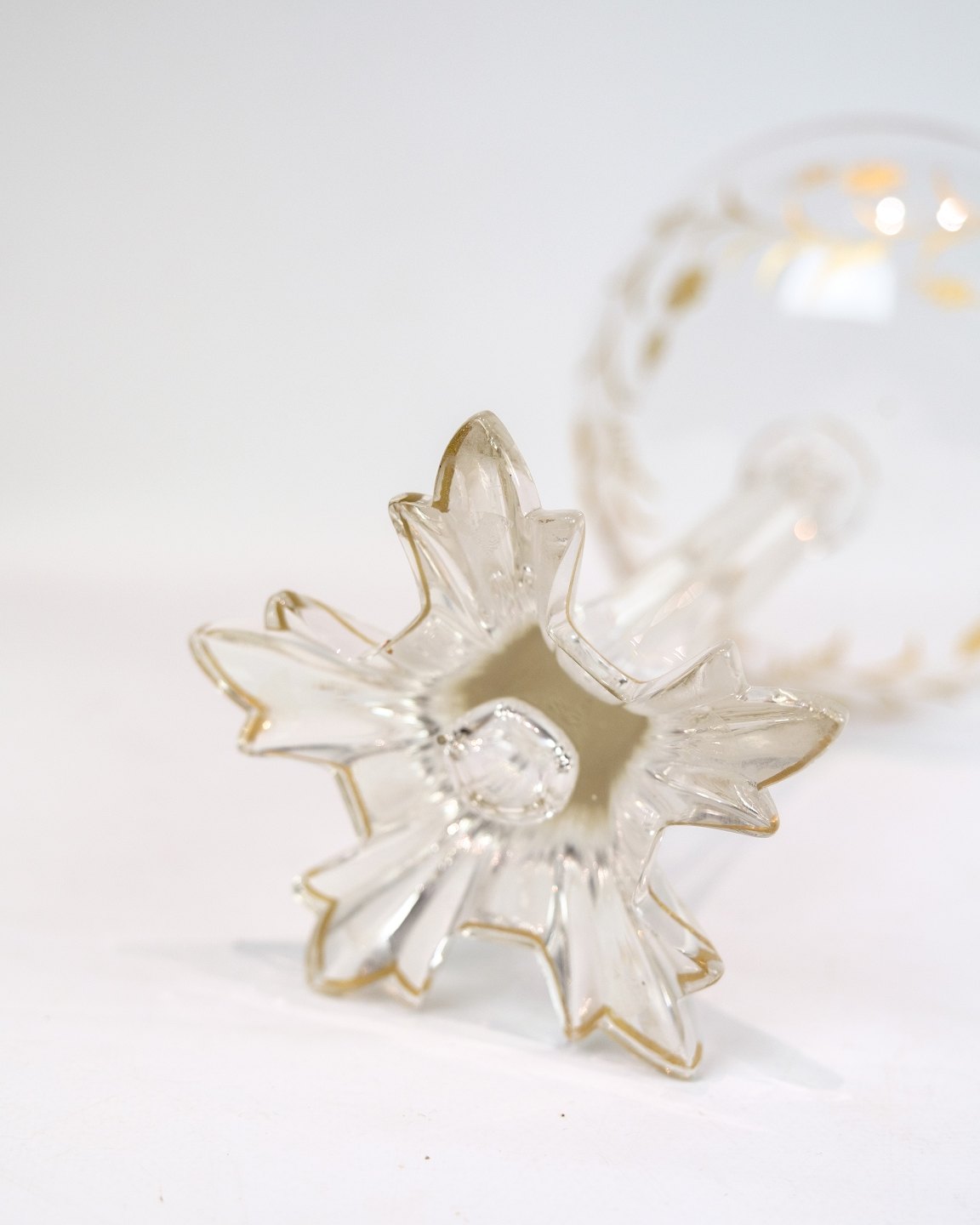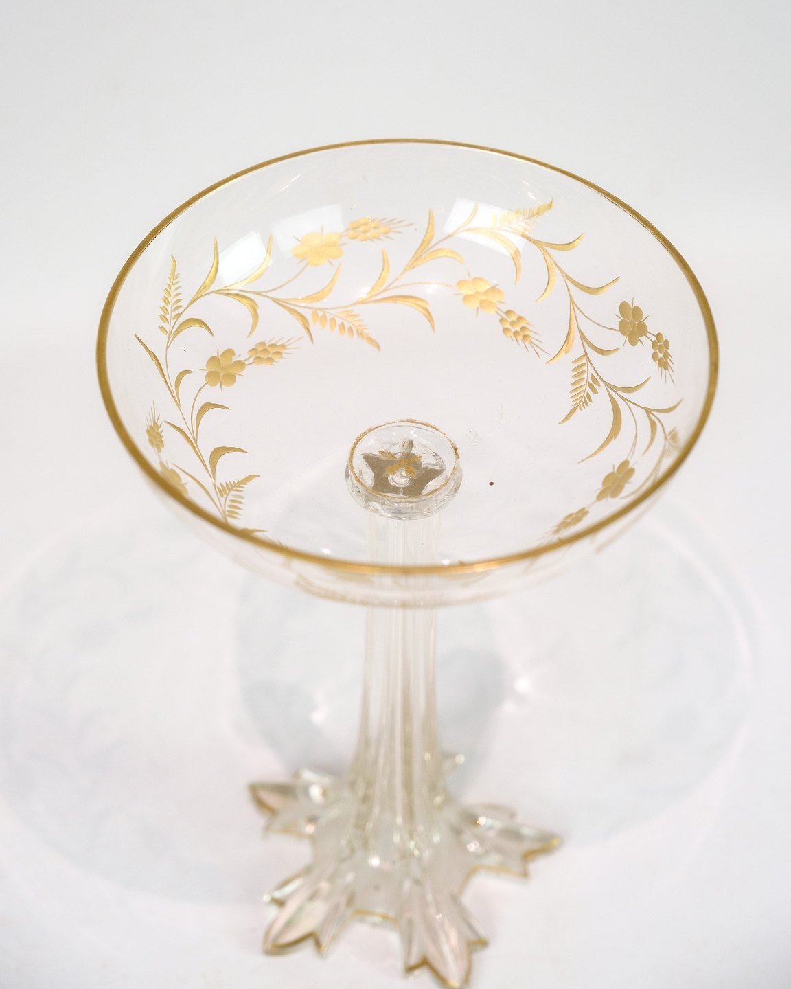 Glass top decorated with patterned gold and designed in a unique way from around the 1890s. Is in very good condition.