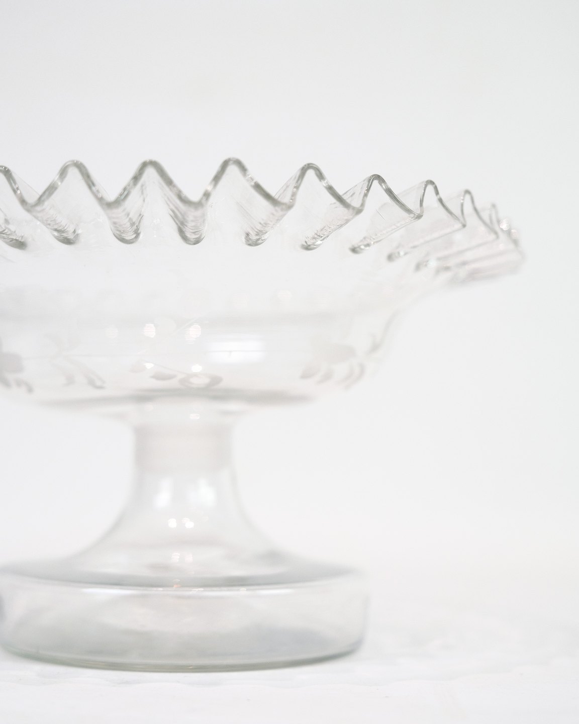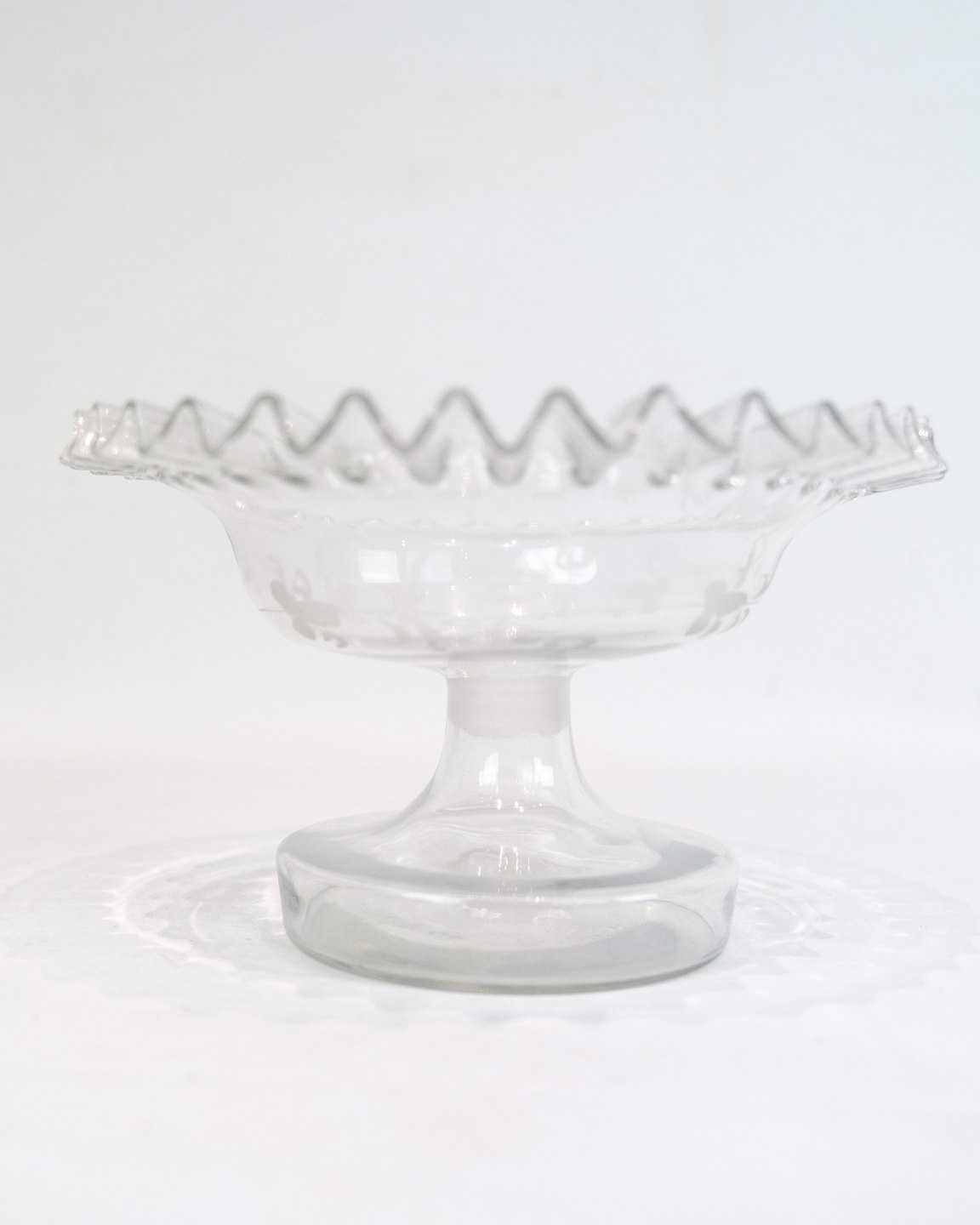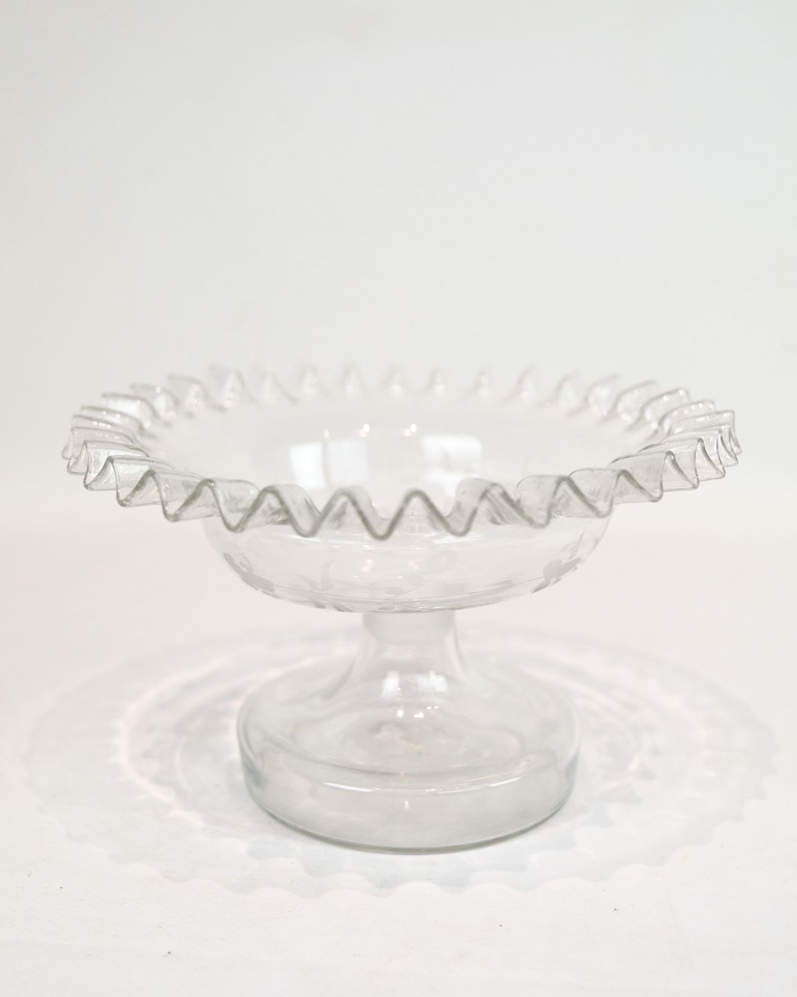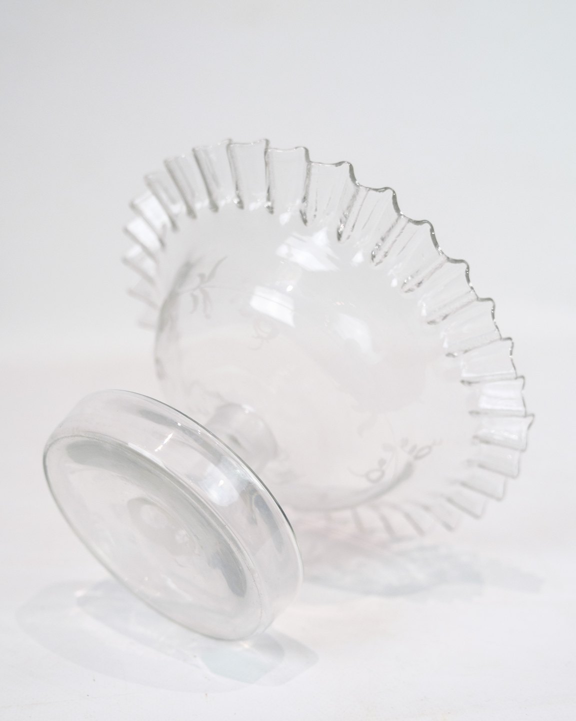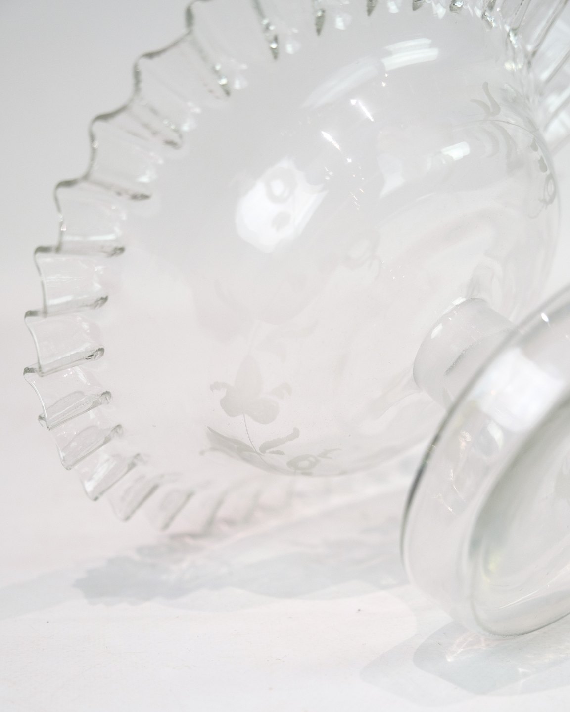 This glass stand is made with the edge pattern and produced by Fynsk Glasværk from the 1890s. The essay is in excellent condition.