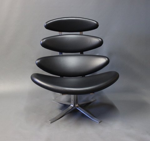 Lænestolen, Model AP 19 også kendt som "Bamsestolen", designet af Hans J. Wegner i 1951 og fremstillet af P.P Møbler, er et ikon inden for dansk design. Stolen er betrukket med luksuriøst sort læder, hvilket sikrer både komfort og et stilfuldt udtryk. Armlænene, kendt som "neglen," er lavet af teaktræ, mens benene er udført i solidt egetræ, hvilket giver en smuk kontrast og holdbarhed.