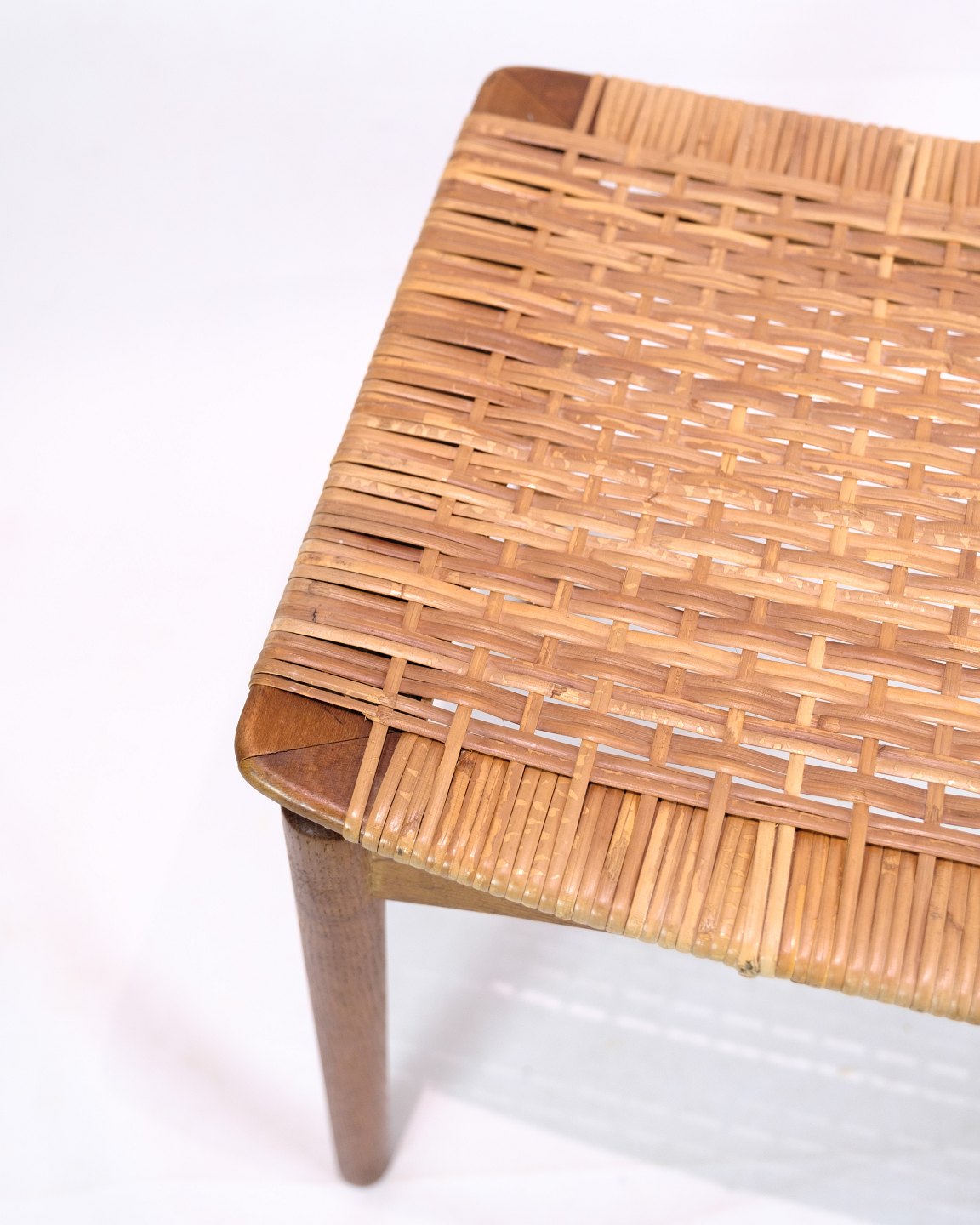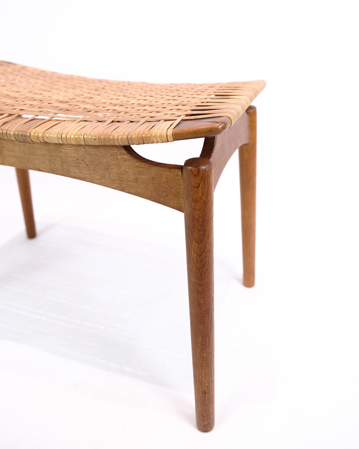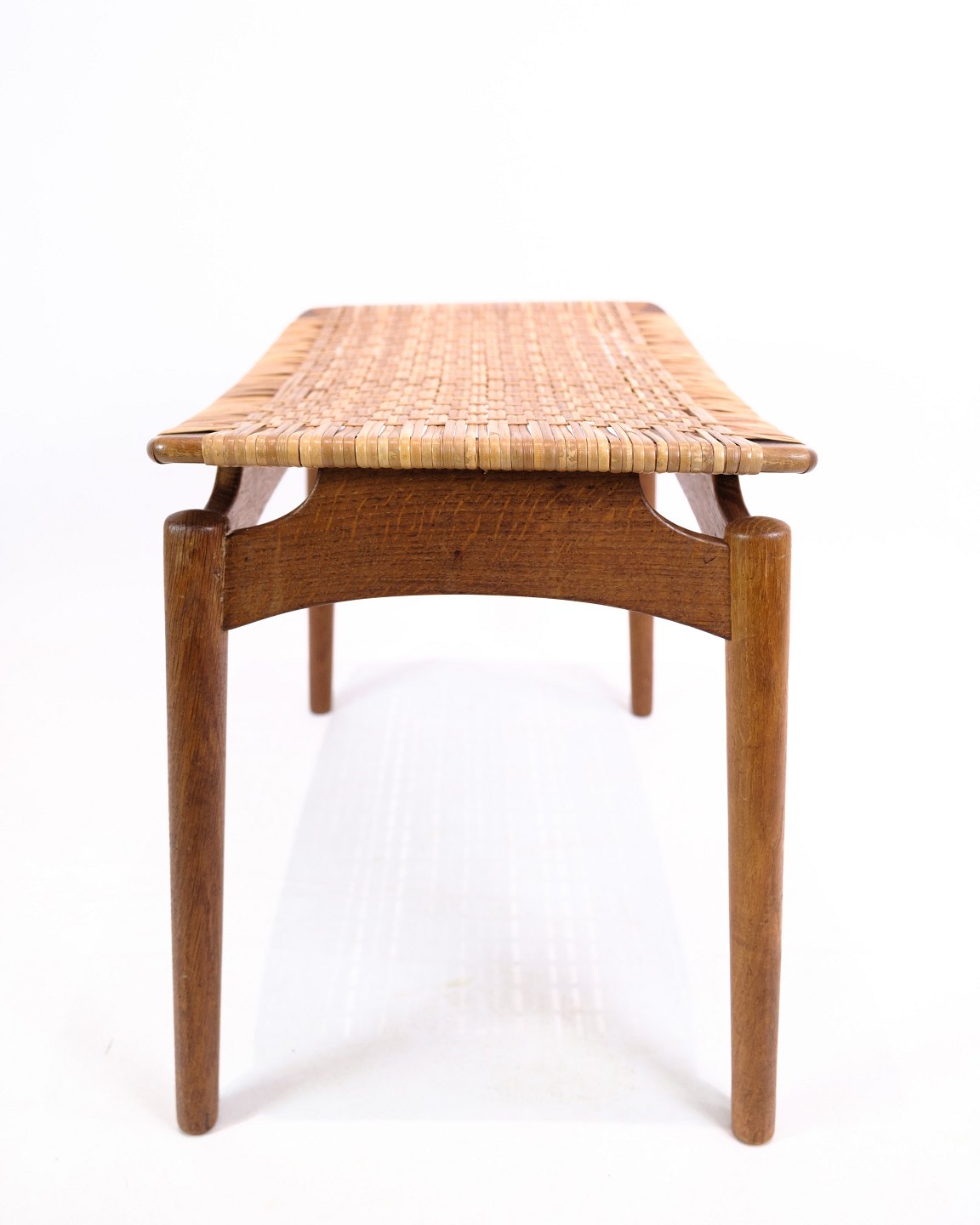 Stool in oak with caning, designed by Sigfred Omann for Ølholm Møbelfabrik in the 1960s. The stool combines solid wood with a hand-woven seat, which gives it both strength and elegance. Sigfred Omann is known for his quality designs and, in collaboration with Ølholm Møbelfabrik, a recognized producer of Danish furniture craftsmanship, created this stool.