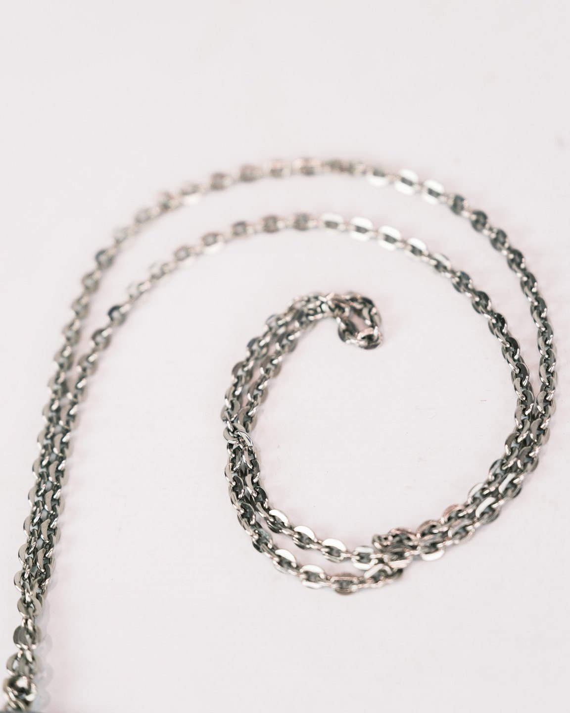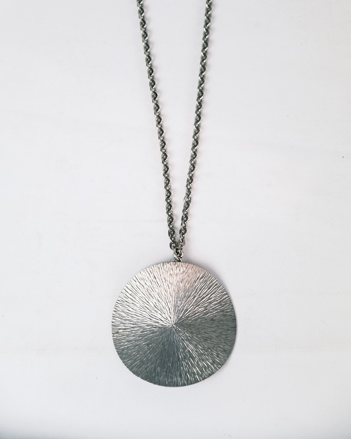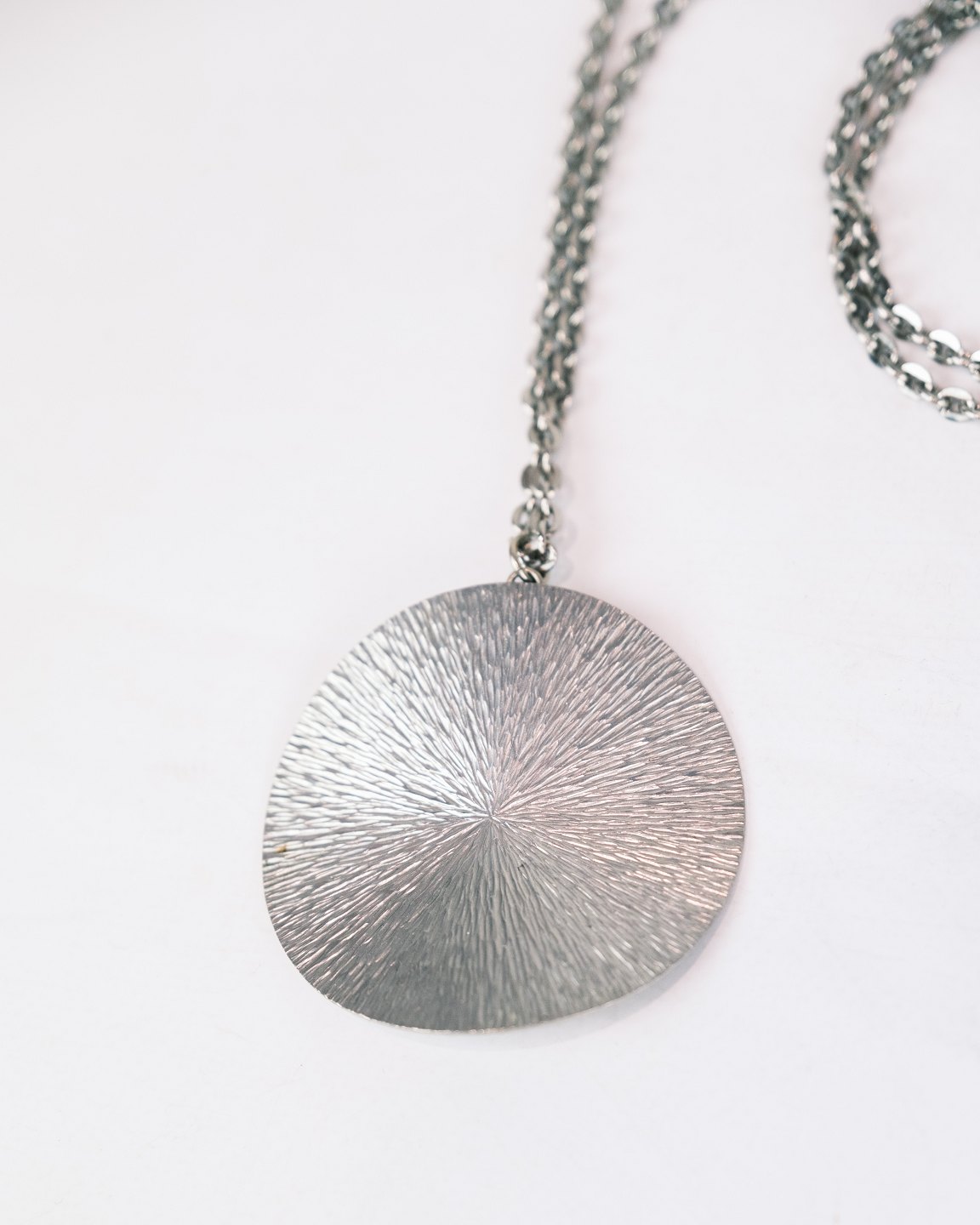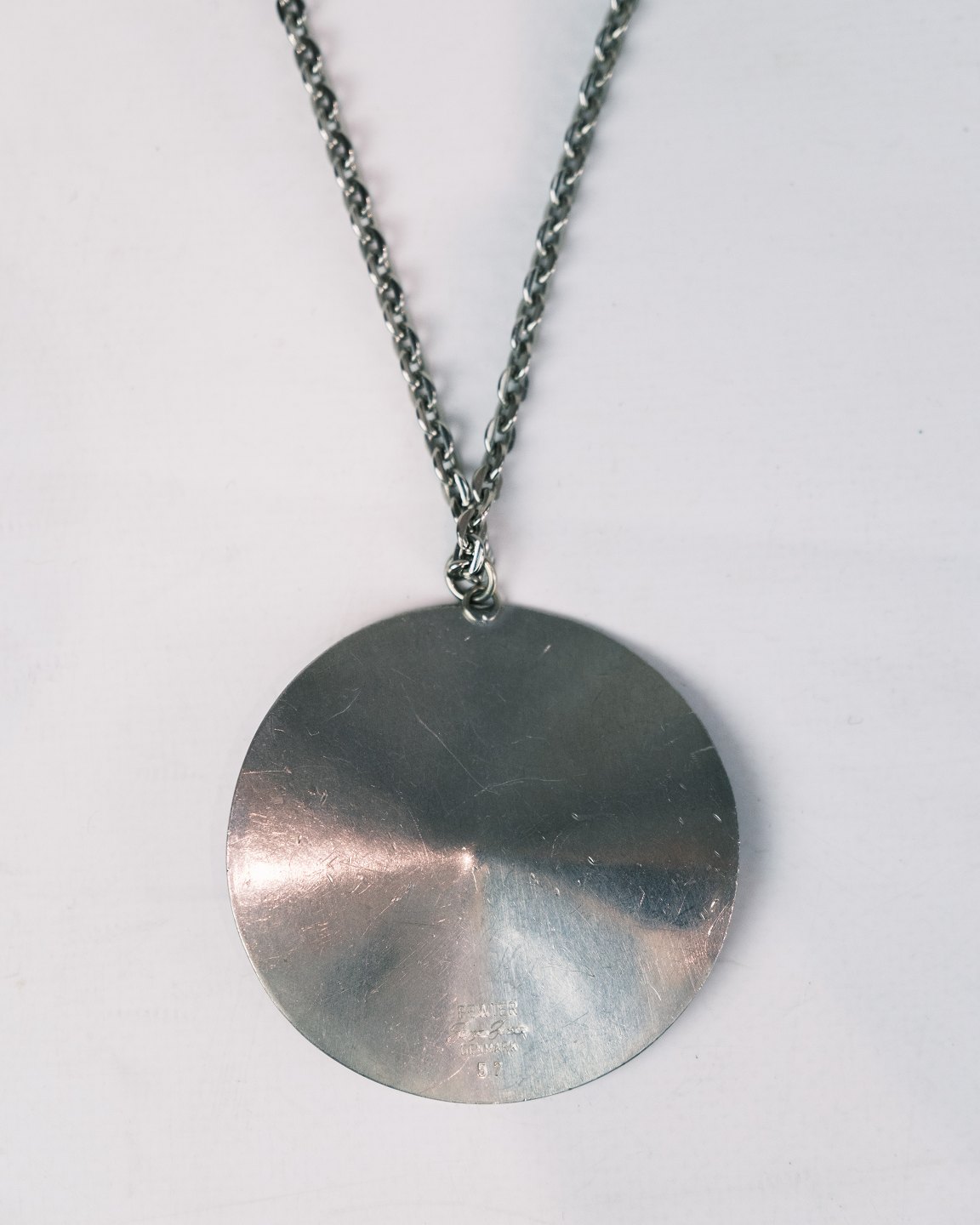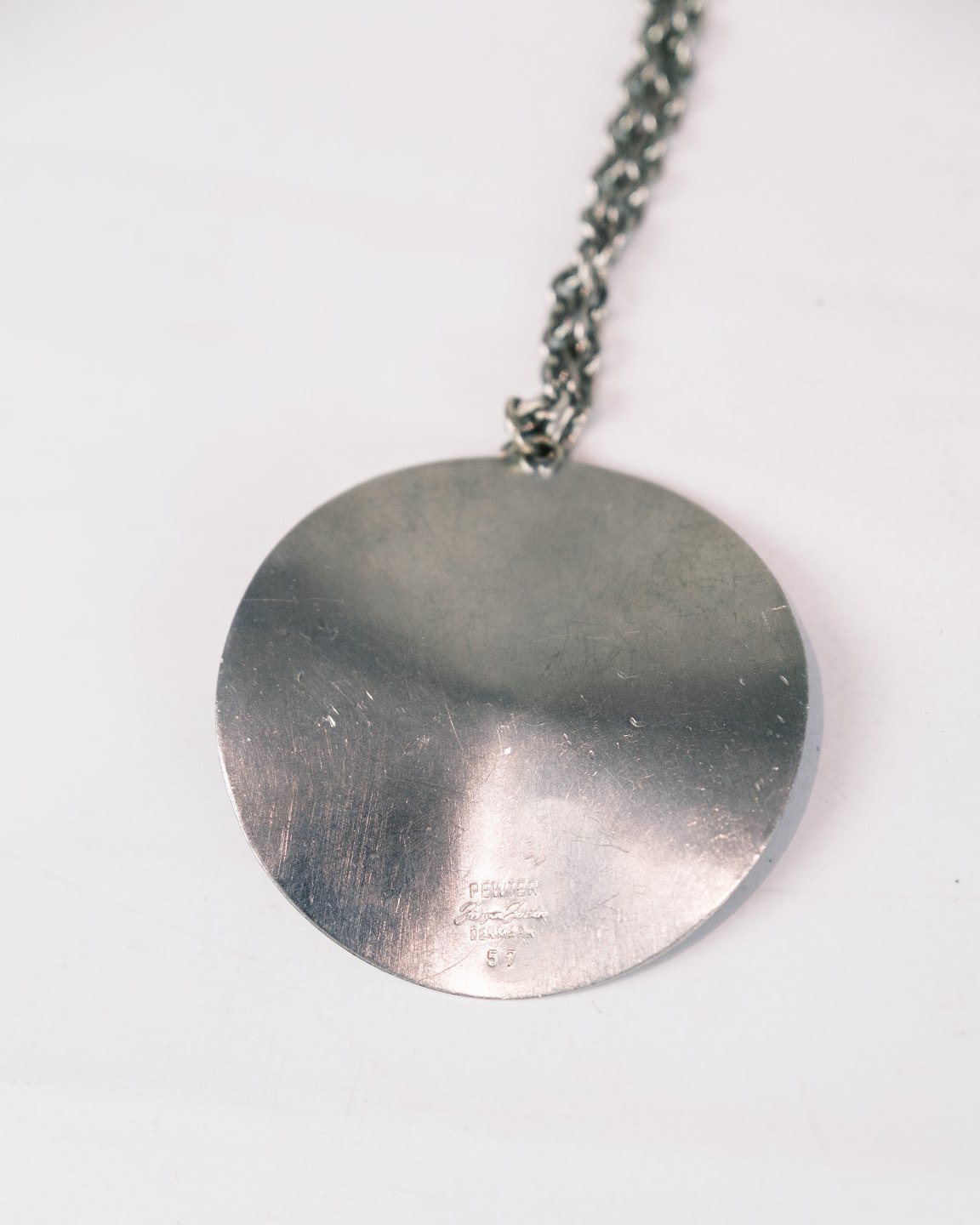 Necklace with tin jewelery and silver chain, designed by Jørgen Jensen in the 1960s. Jørgen Jensen is known for his stylish designs in pewter, where he often combined different materials to create unique jewellery.