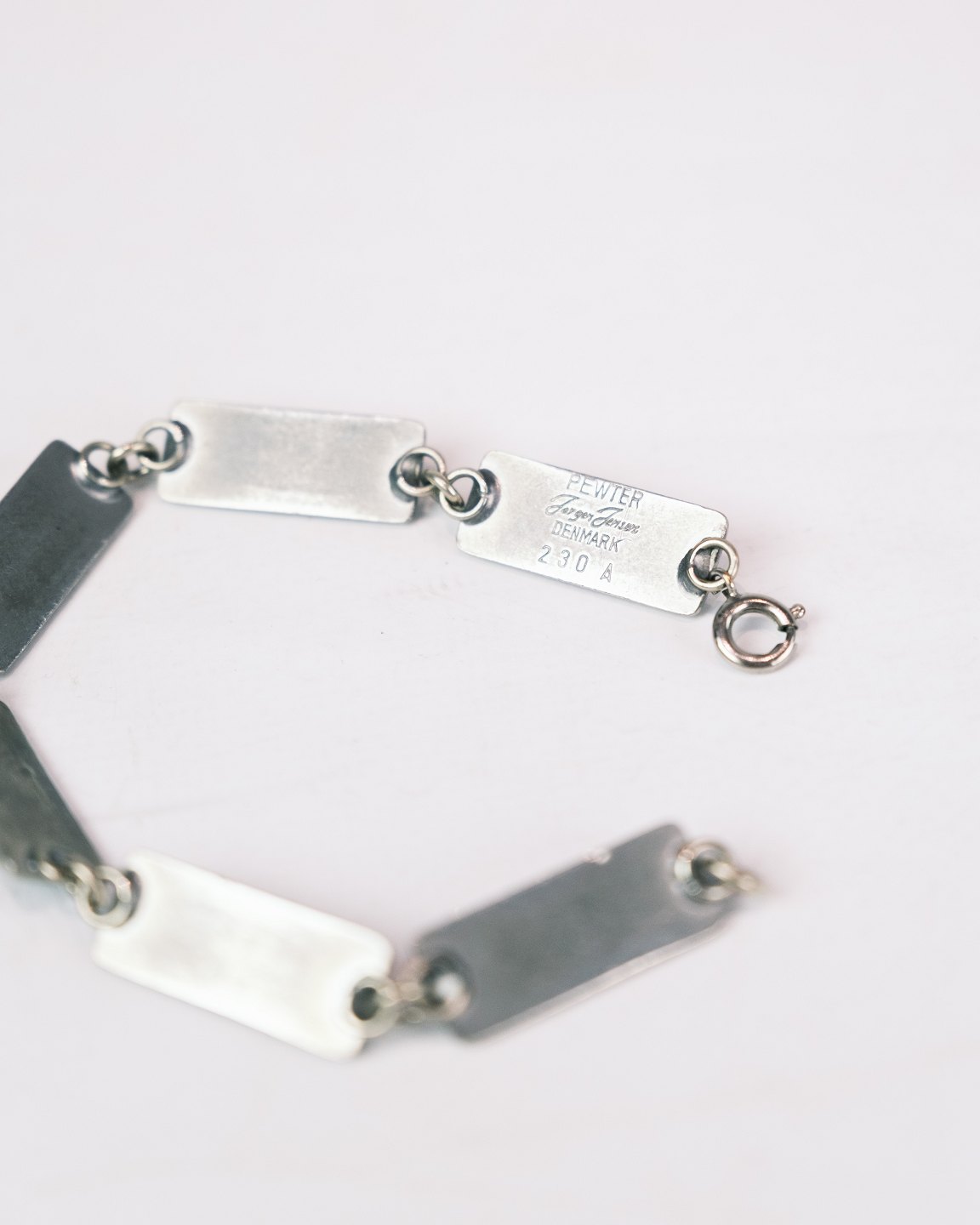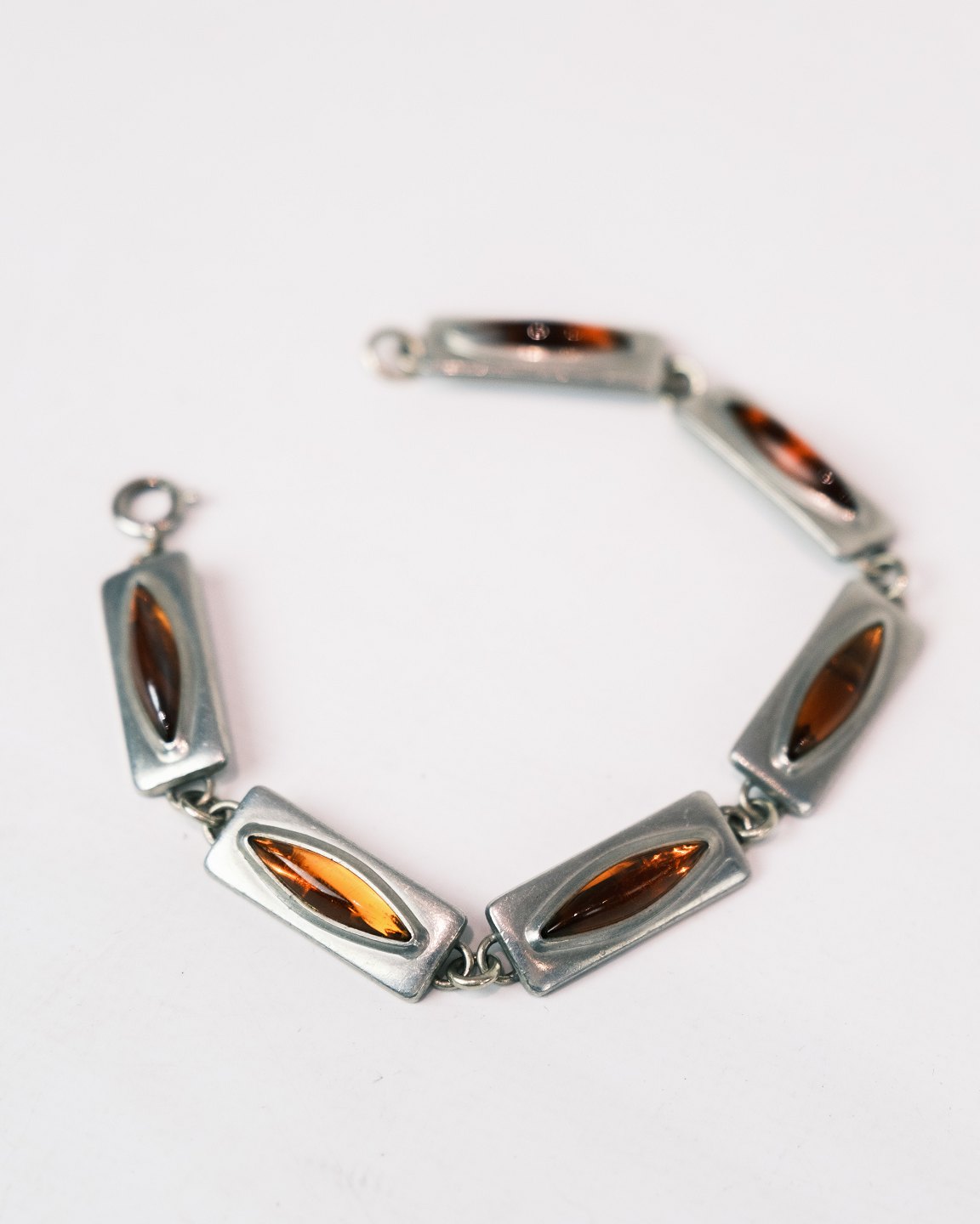 Tin bracelet, decorated with amber, designed by Jørgen Jensen in the 1960s. Jørgen Jensen, recognized for his simple and elegant pewter jewelry, created designs that reflect a harmonious balance between materials.