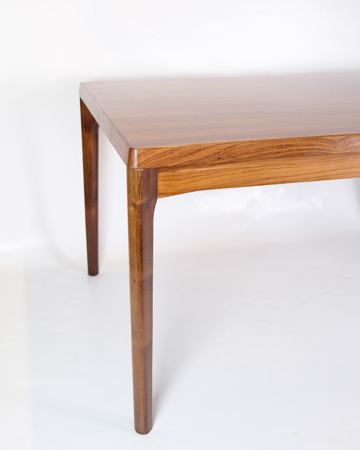 Dining table in rosewood, designed by Henning Kjærnulf and produced by Vejle Stole- & Møbelfabrik in the 1960s. The table has a pull-out function, which means you can have extra space for guests.