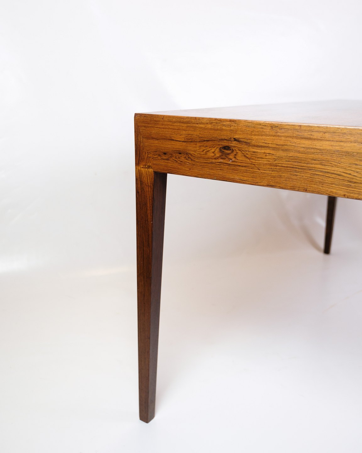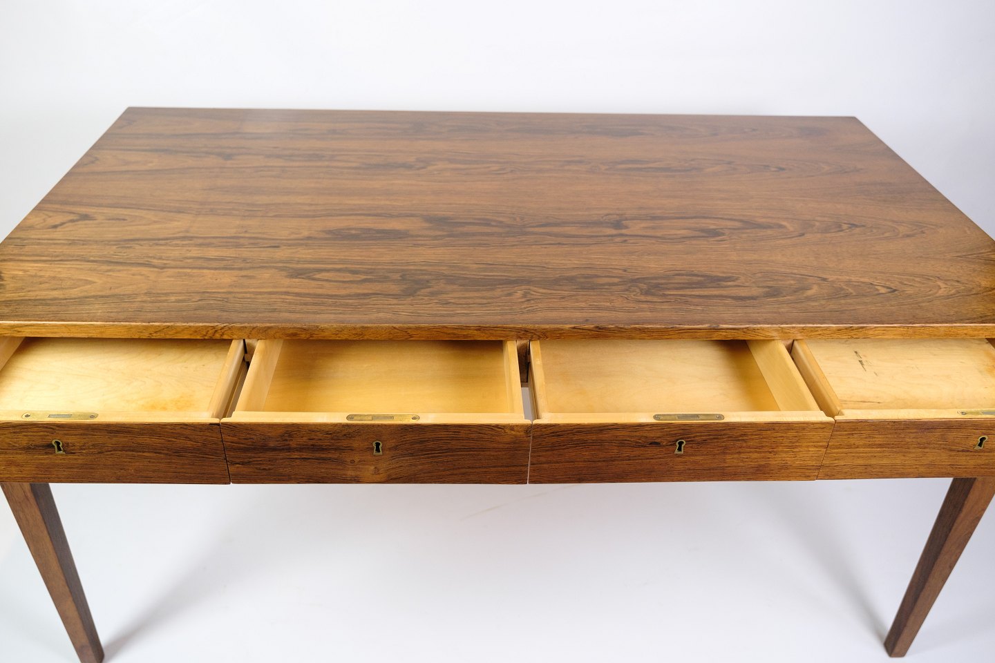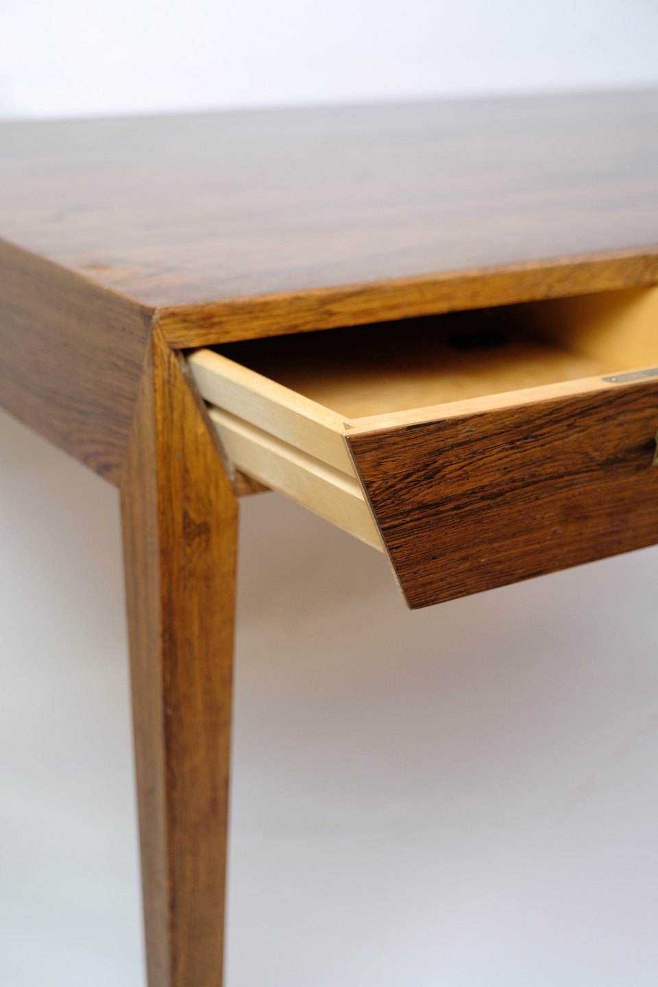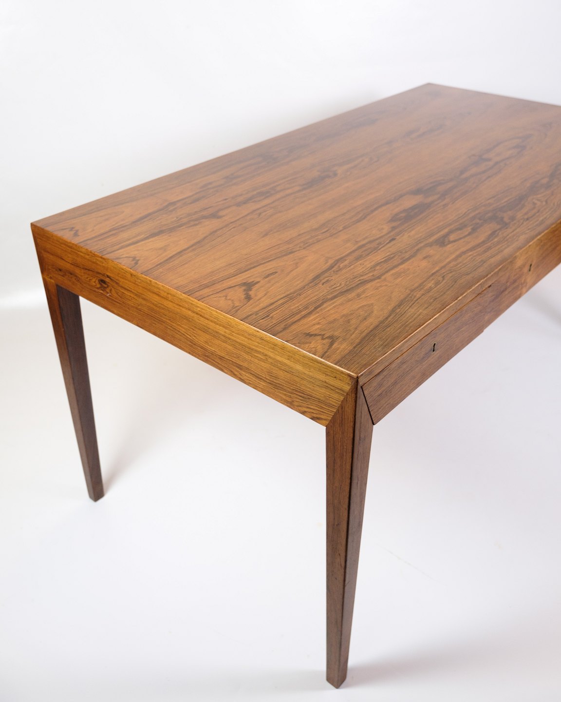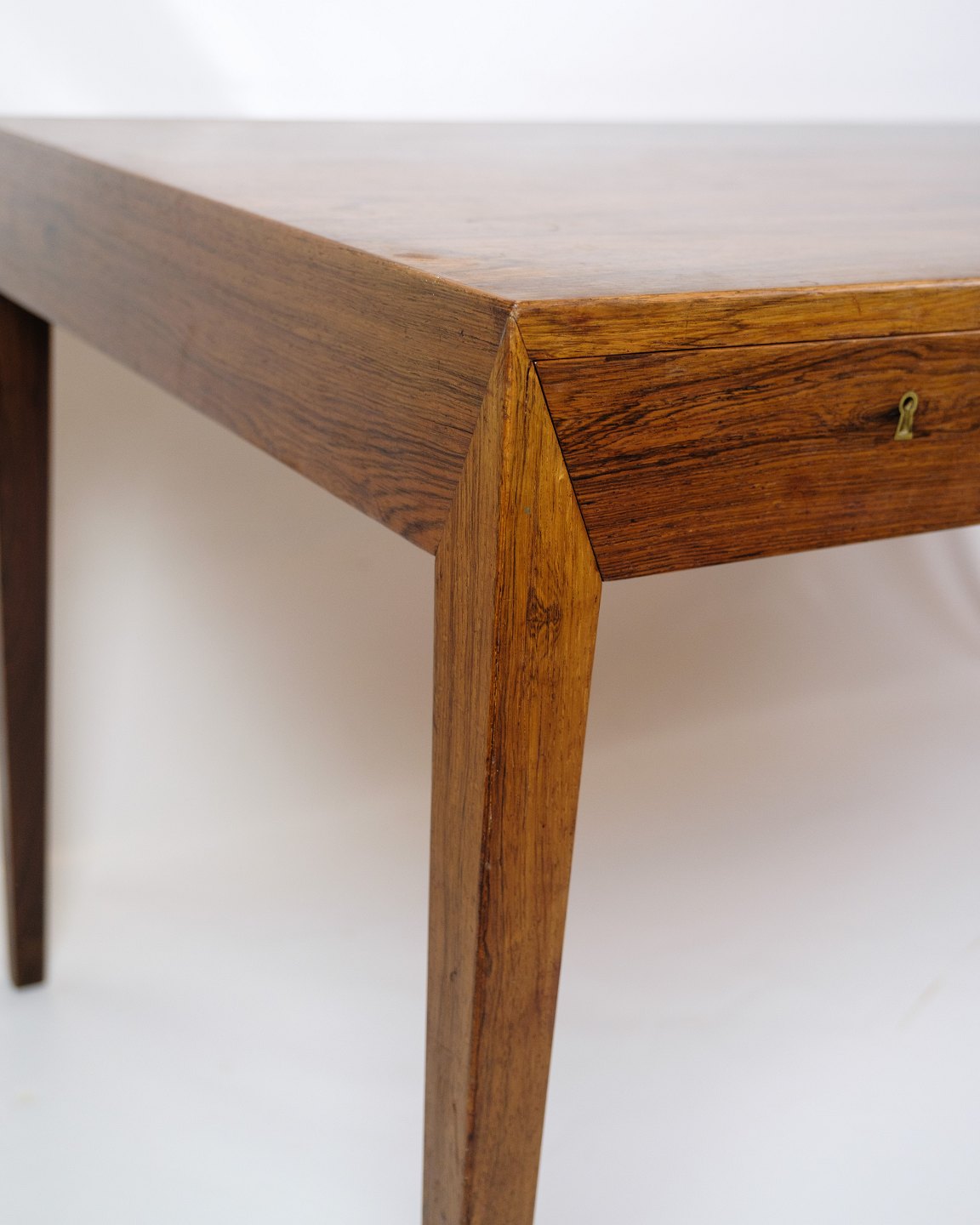 Desk in rosewood, designed by Severin Hansen and produced by Haslev Møbelfabrik in the 1960s. The table is made of beautiful rosewood, known for its rich color and unique grain patterns. With its simple and elegant design, this desk is a timeless example of Danish furniture art from the mid-20th century.