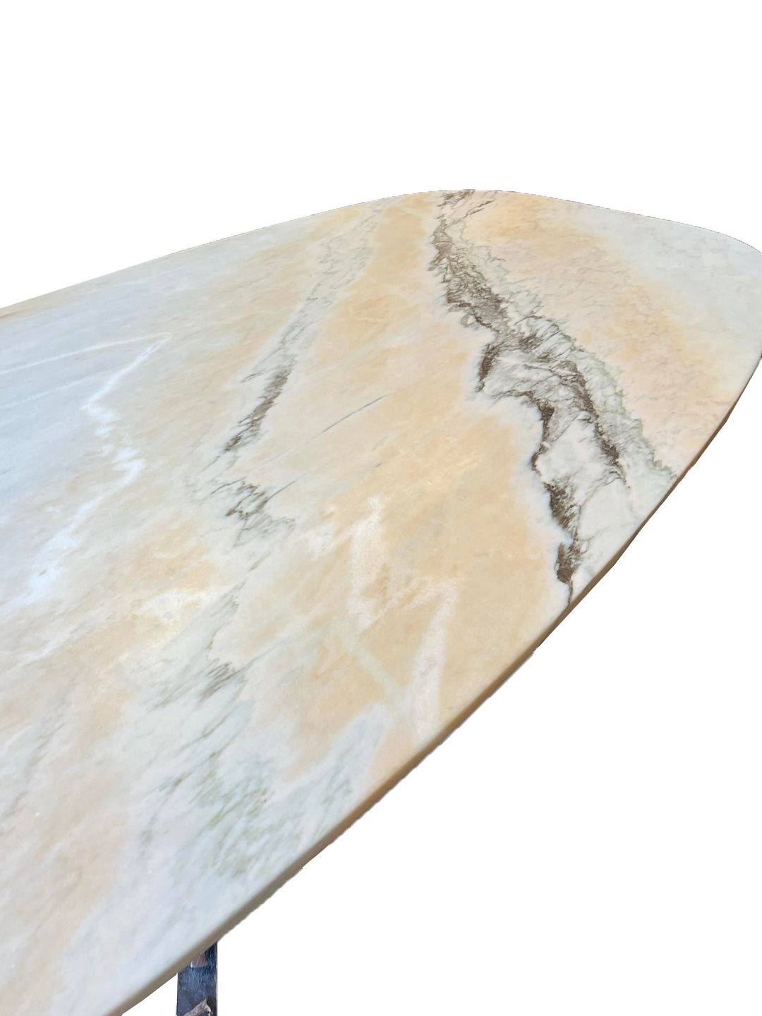 Rosafarvet marmorbord med stel af massivt stål/chrome, købt i Illums Bolighus i 1980'erne. Bordet har en smuk, rosafarvet marmorbordplade, der står i flot kontrast til det robuste stel af stål og chrome. En elegant og tidløs kombination, der passer perfekt ind i både moderne og klassiske indretninger.