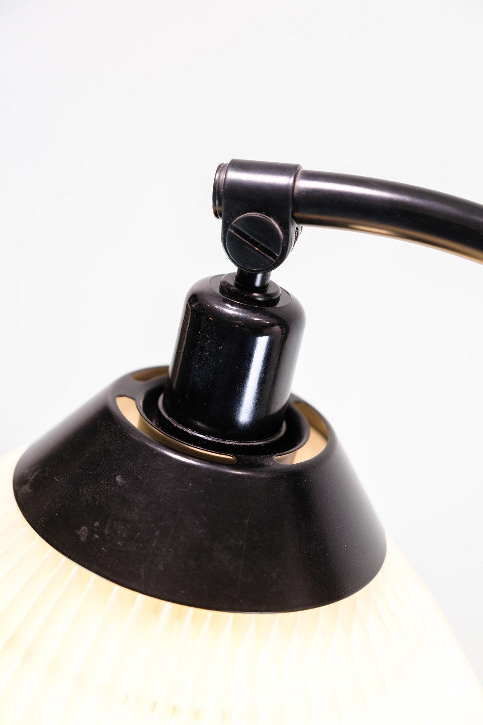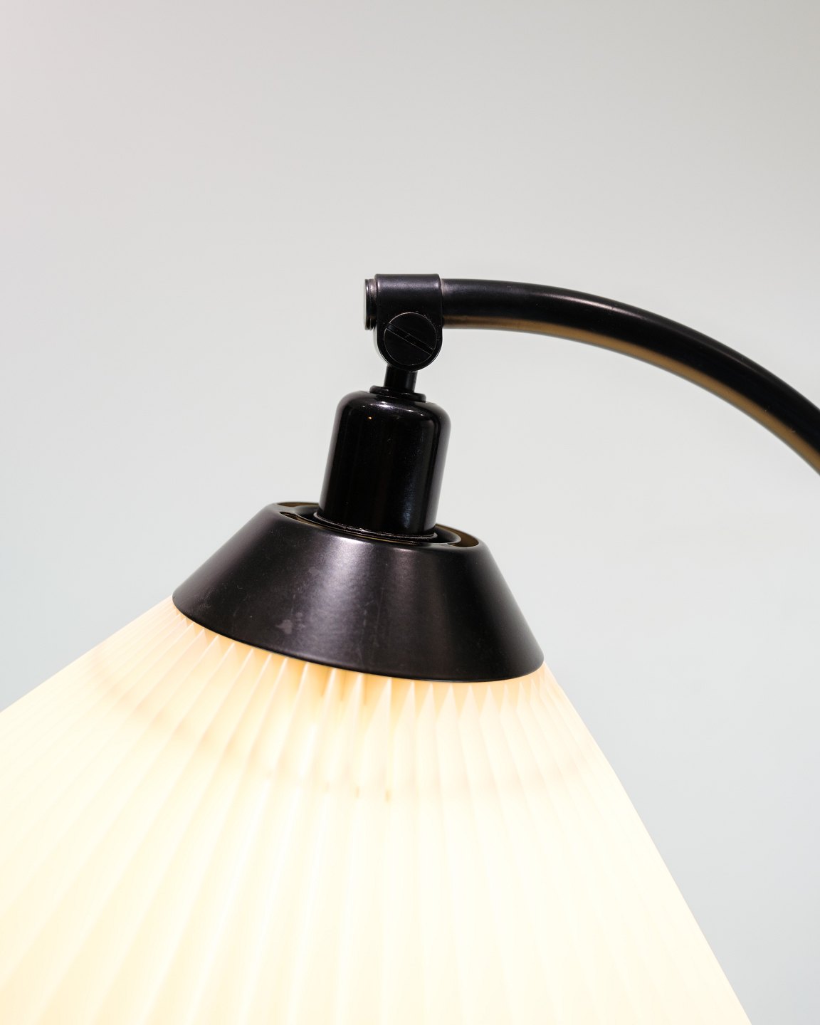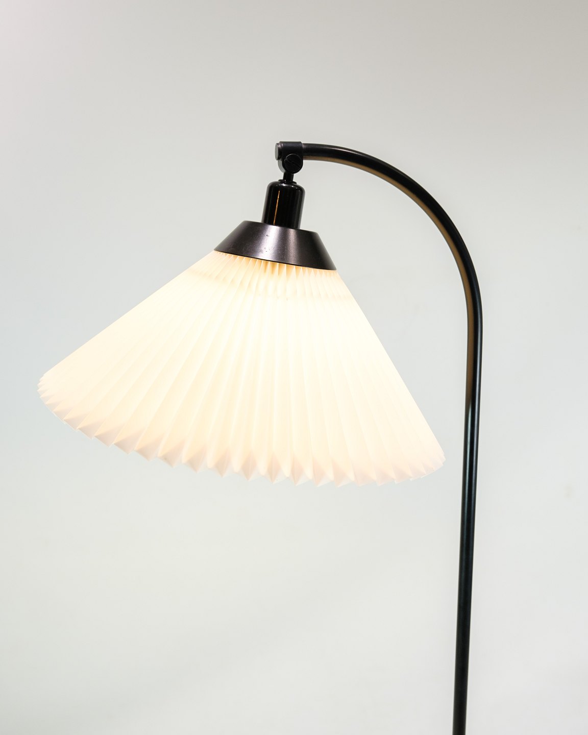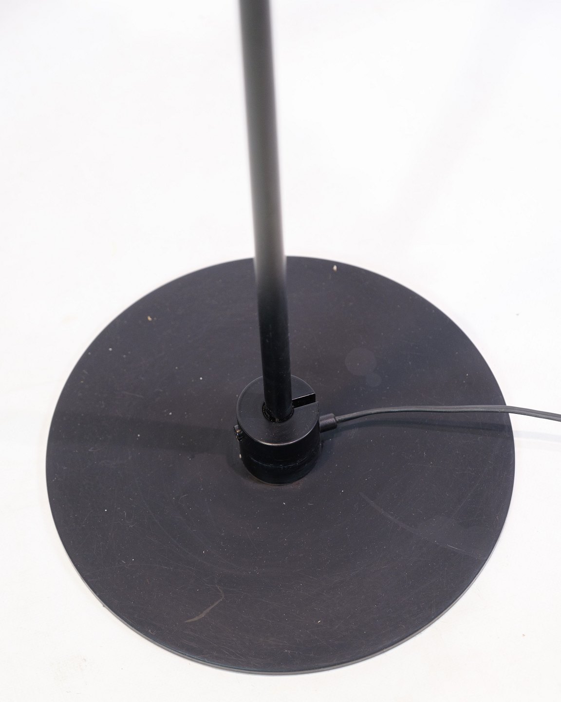 Gulvlampe, model 368, udført i sortlakeret metal, designet af Flemming Agger og fremstillet af Le Klint. Lampen kombinerer en solid metalstruktur med et enkelt og funktionelt design, der passer ind i mange forskellige miljøer. Flemming Agger, født i 1944, blev oprindeligt uddannet som møbelsnedker og senere som arkitekt fra Kunsthåndværkerskolen. Han er kendt for sine minimalistiske designs, herunder flere lamper for Le Klint, hvoraf model 368, lanceret i 1979, er en af de mest populære.