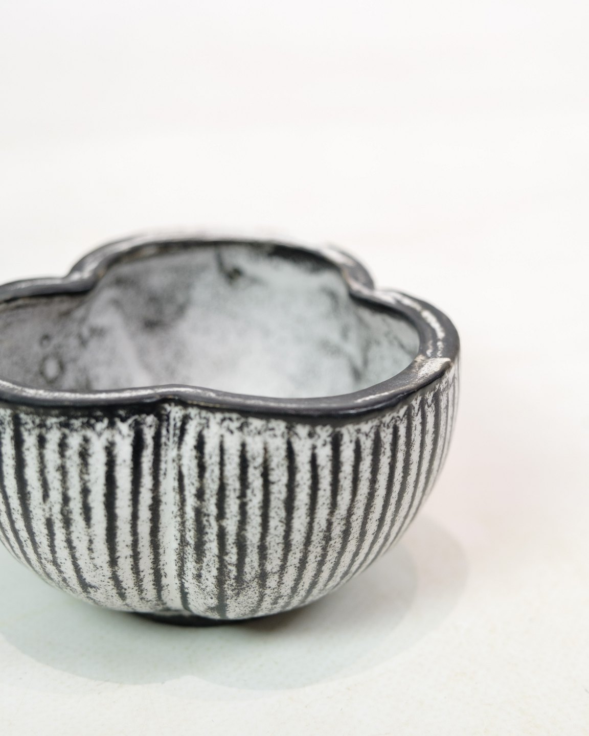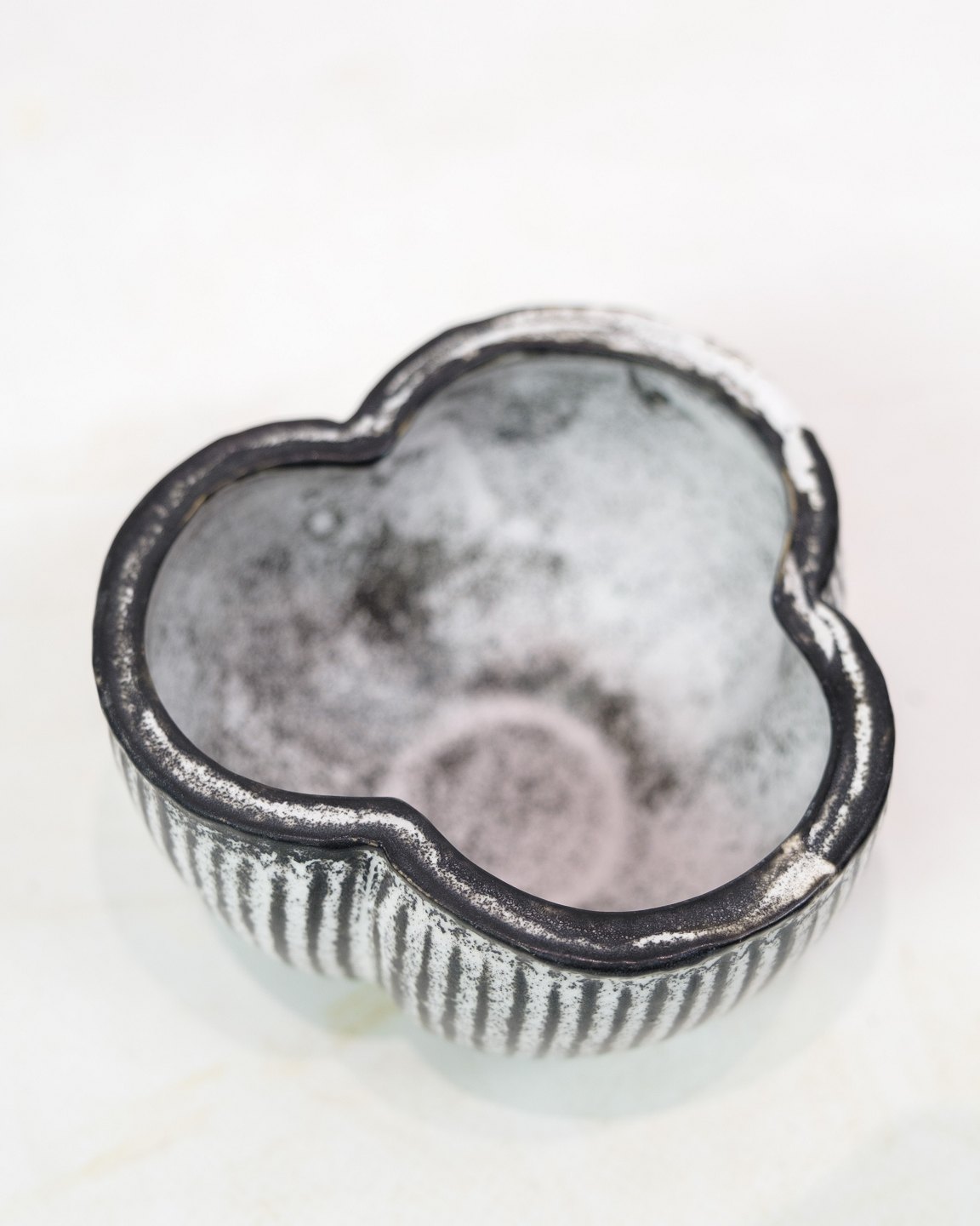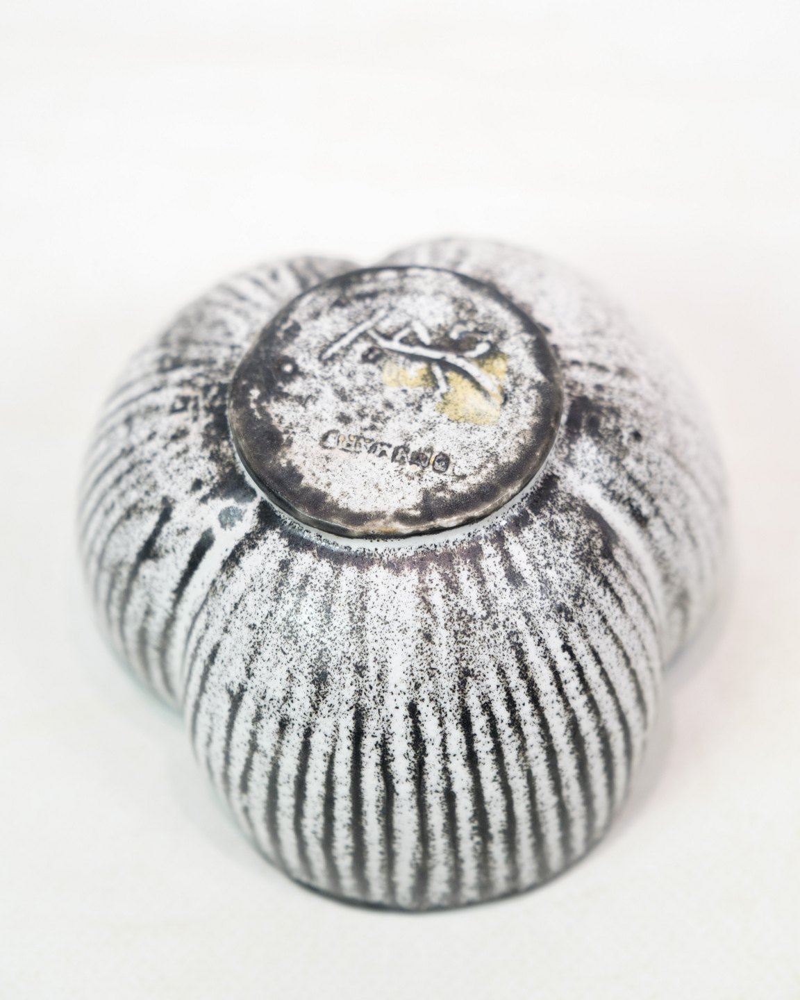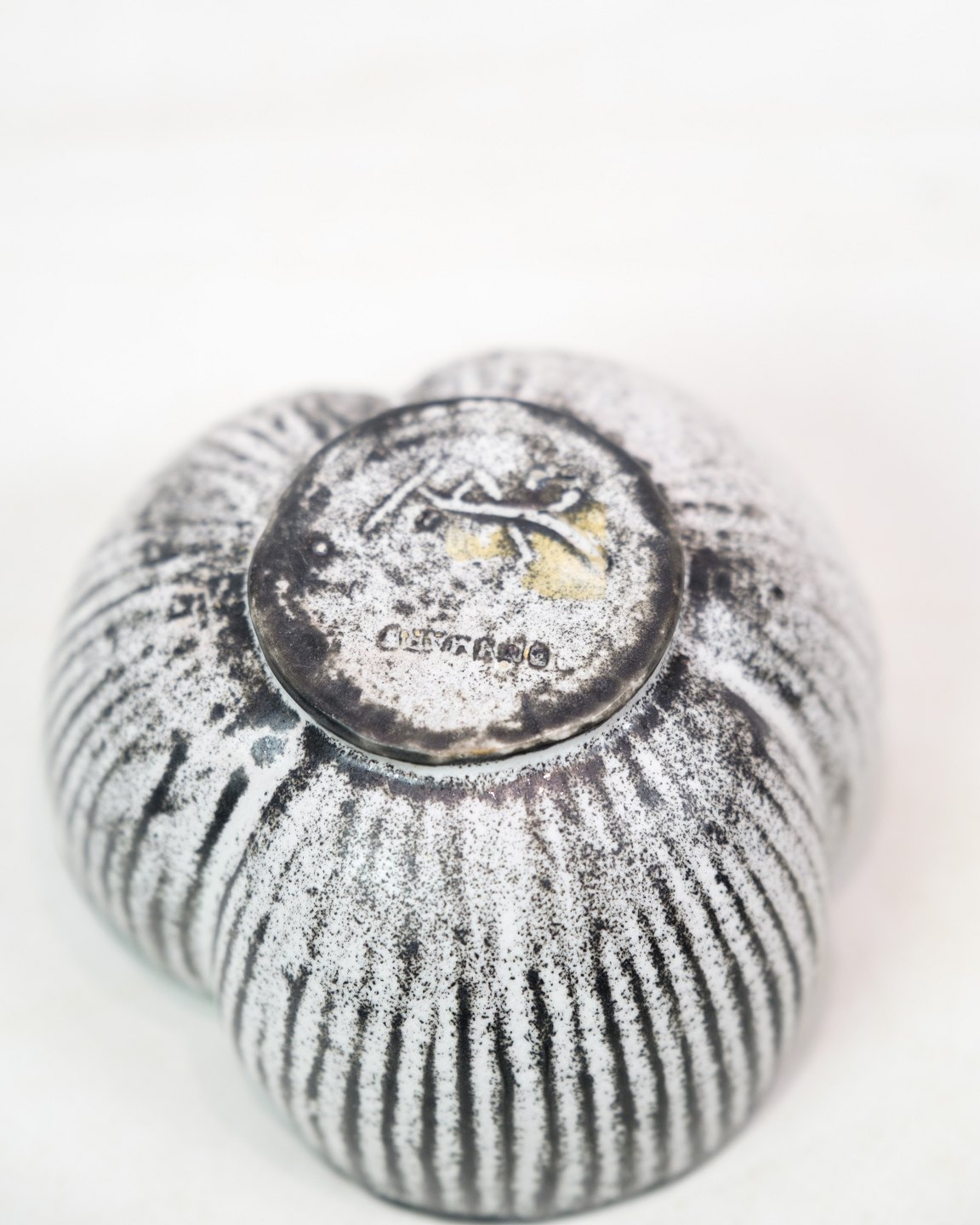 SoldBowl with grey/black double glaze, designed by Svend Hammershøj and produced by Kähler in the 1940s. Hammershøj was a renowned Danish ceramist who collaborated with Kähler from the early 1900s and was known for his experiments with different glazes, including the double glaze, which became a hallmark of his designs.