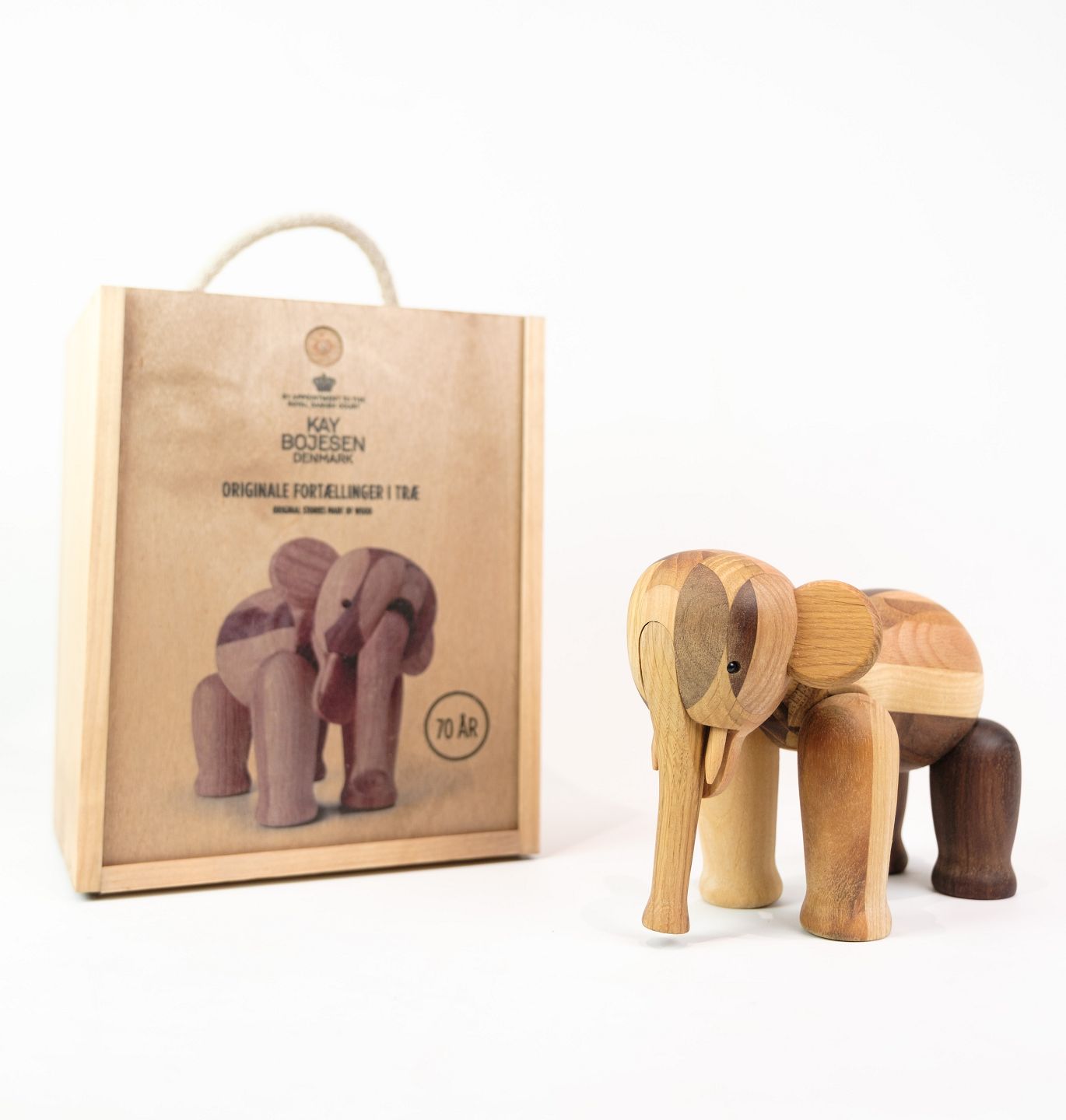 Lille Elefant reworked af Kay Bojesen, udgivet i forbindelse med 70-års jubilæet, er en speciel udgave af den ikoniske træfigur. Kay Bojesen startede sin karriere som sølvsmed under Georg Jensen, men blev især kendt for sine trædyr, herunder den berømte abe fra 1951. Hans trælegetøj kombinerede enkelhed med kvalitet og var skabt med fokus på funktionalitet og holdbarhed. Bojesen mente, at design skulle være tilgængeligt for alle og skabte derfor figurer, der kunne glæde både børn og voksne.