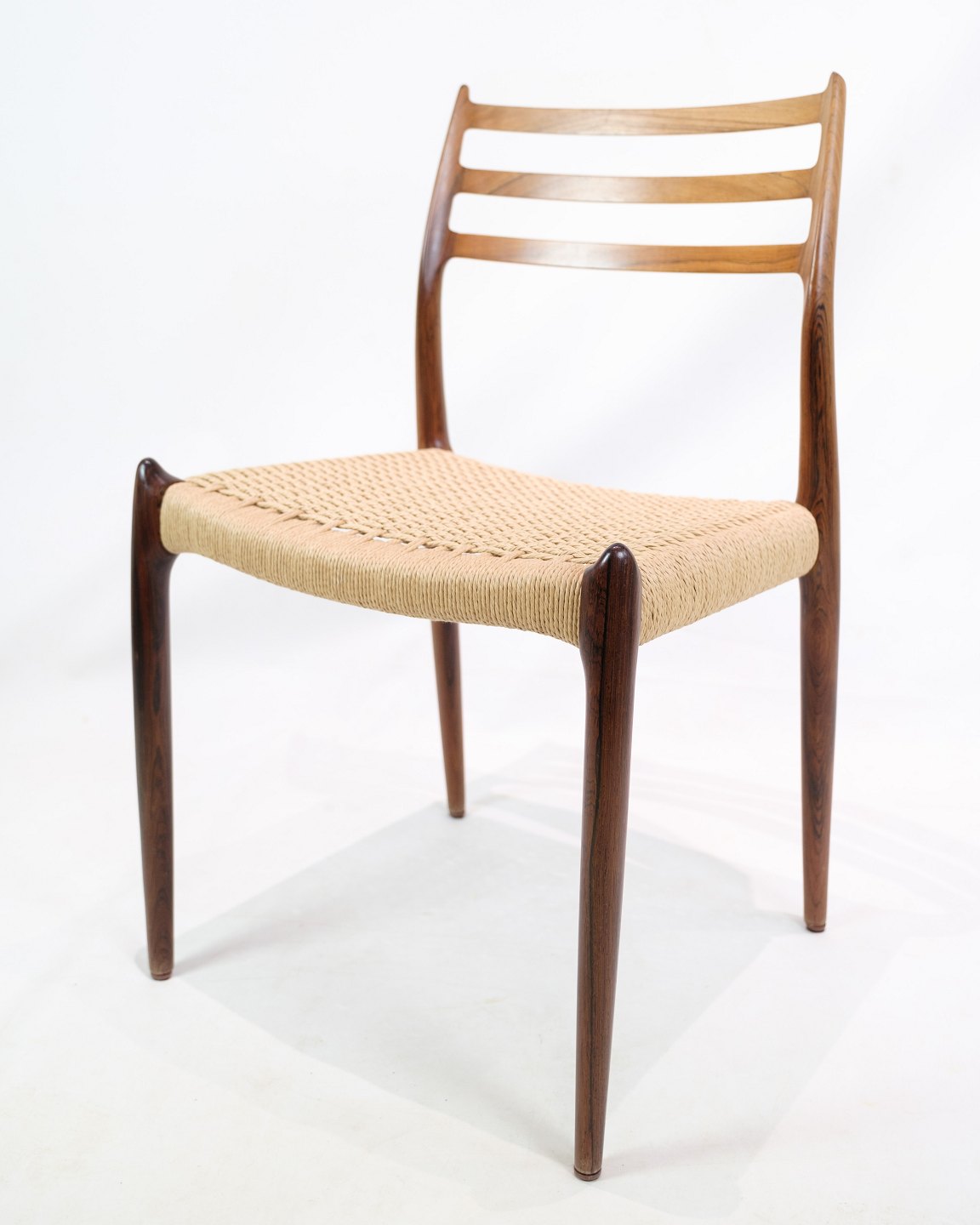 Niels Otto Møller (1920-1982) was a Danish designer and cabinet maker who founded J.L. Møllers Møbelfabrik in 1944. His designs are known for their focus on quality and craftsmanship, and especially his dining table chairs, such as model 78, have been recognized internationally for their elegance and use of natural materials such as rosewood and teak. Møller's furniture remains popular today and is considered an important part of Danish design heritage.