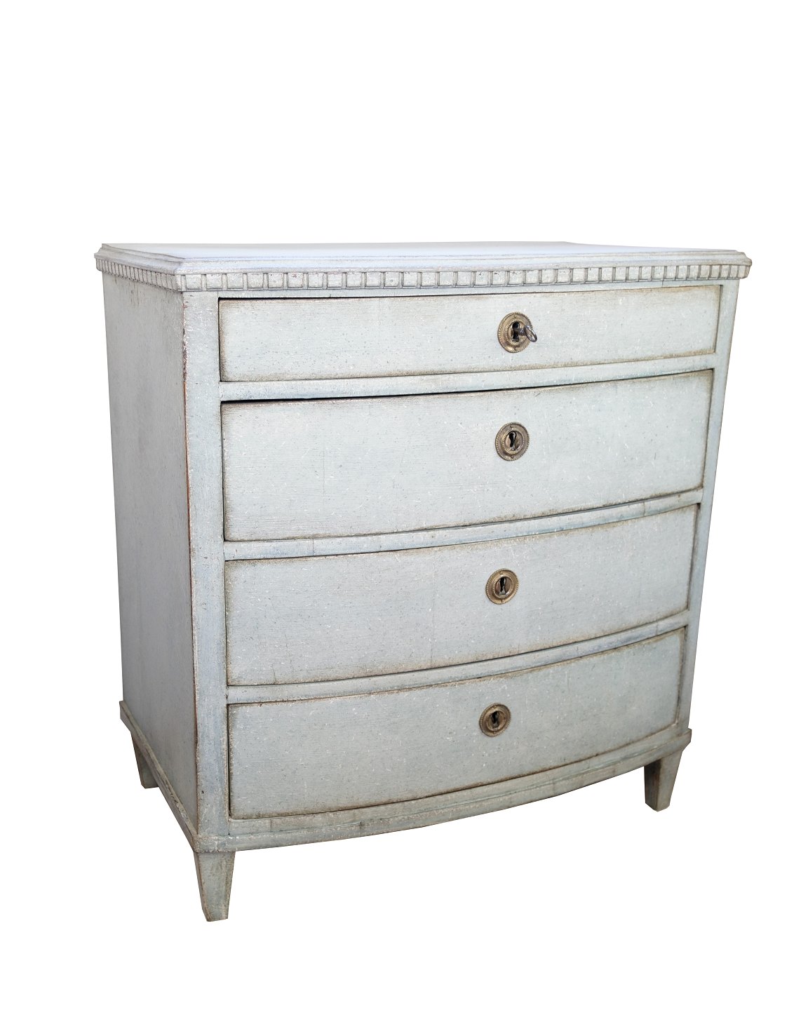 Please contact us for price informationOriginal painted chest of drawers from the Louis Seize period, from Copenhagen, approx. The 1790s. The chest of drawers is in a greenish patinated colour, which reflects the aesthetics and style of the time. Louis Seize furniture is characterized by its straight lines and classic shapes, and was often used in stately homes. This chest of drawers is a good example of the craftsmanship of the time, with the color and patina adding a historical charm. The chest of drawers was used for storage in bedrooms or living rooms in the finer homes of this period.