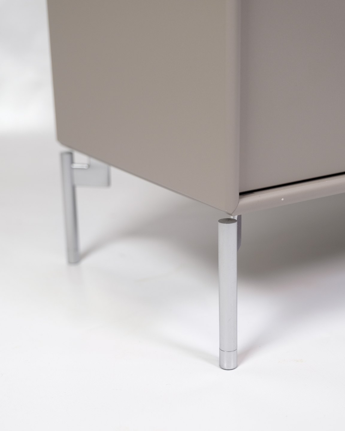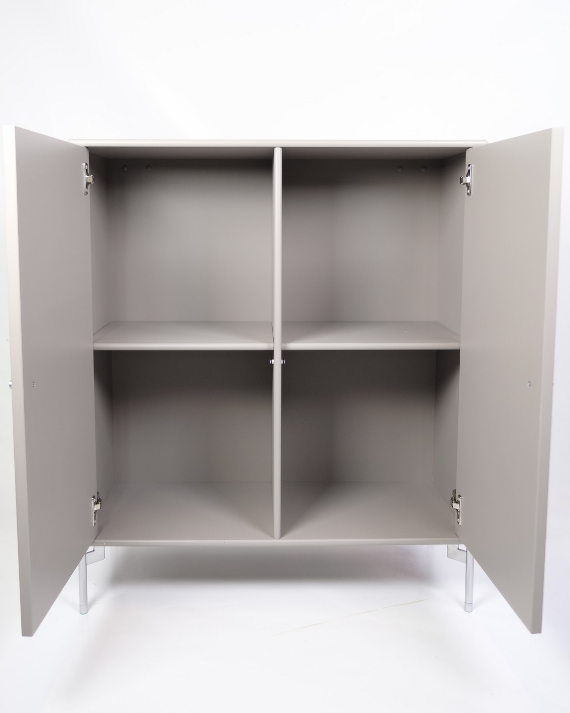 SolgtMontana skab, model 1118, designet af Peter J. Lassen og udført i en grå farve. Skabet er en del af Montanas fleksible opbevaringssystem, der er kendt for sin funktionelle og modulære opbygning. Model 1118 er ideel til opbevaring og kan anvendes både i hjemmet og på kontoret, med mulighed for at tilpasse det til forskellige opbevaringsbehov.