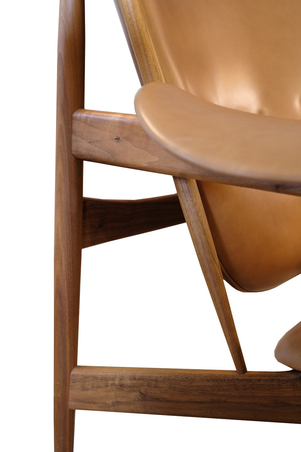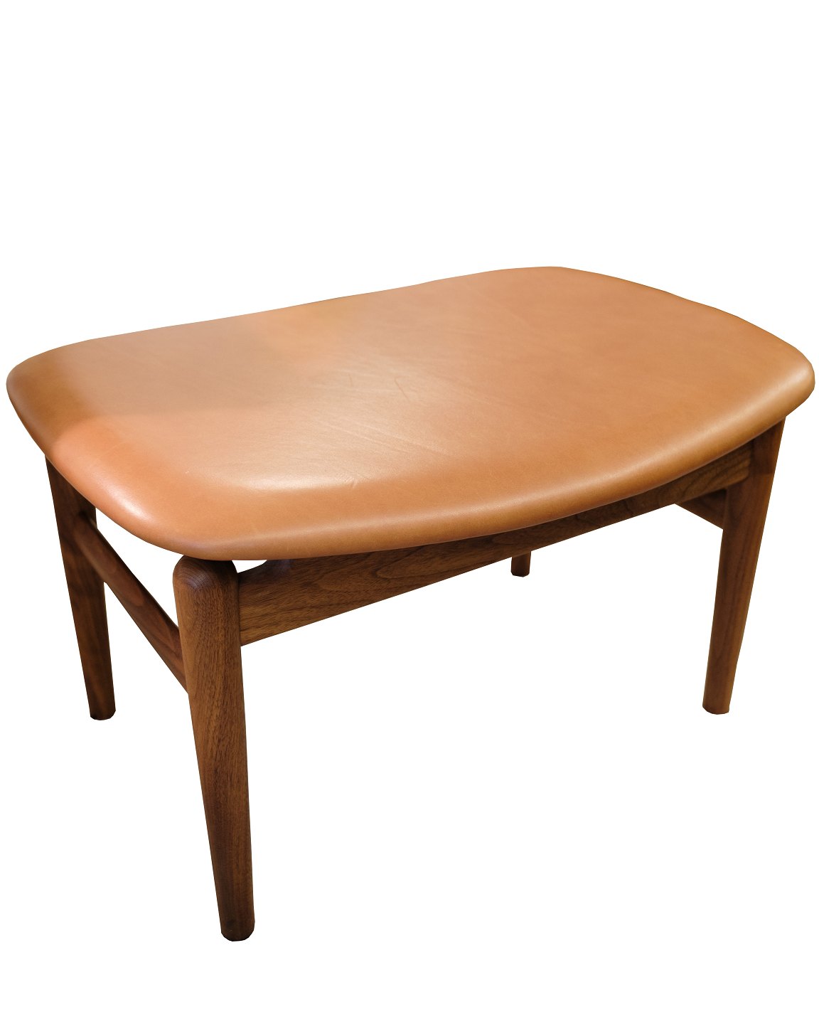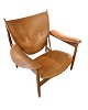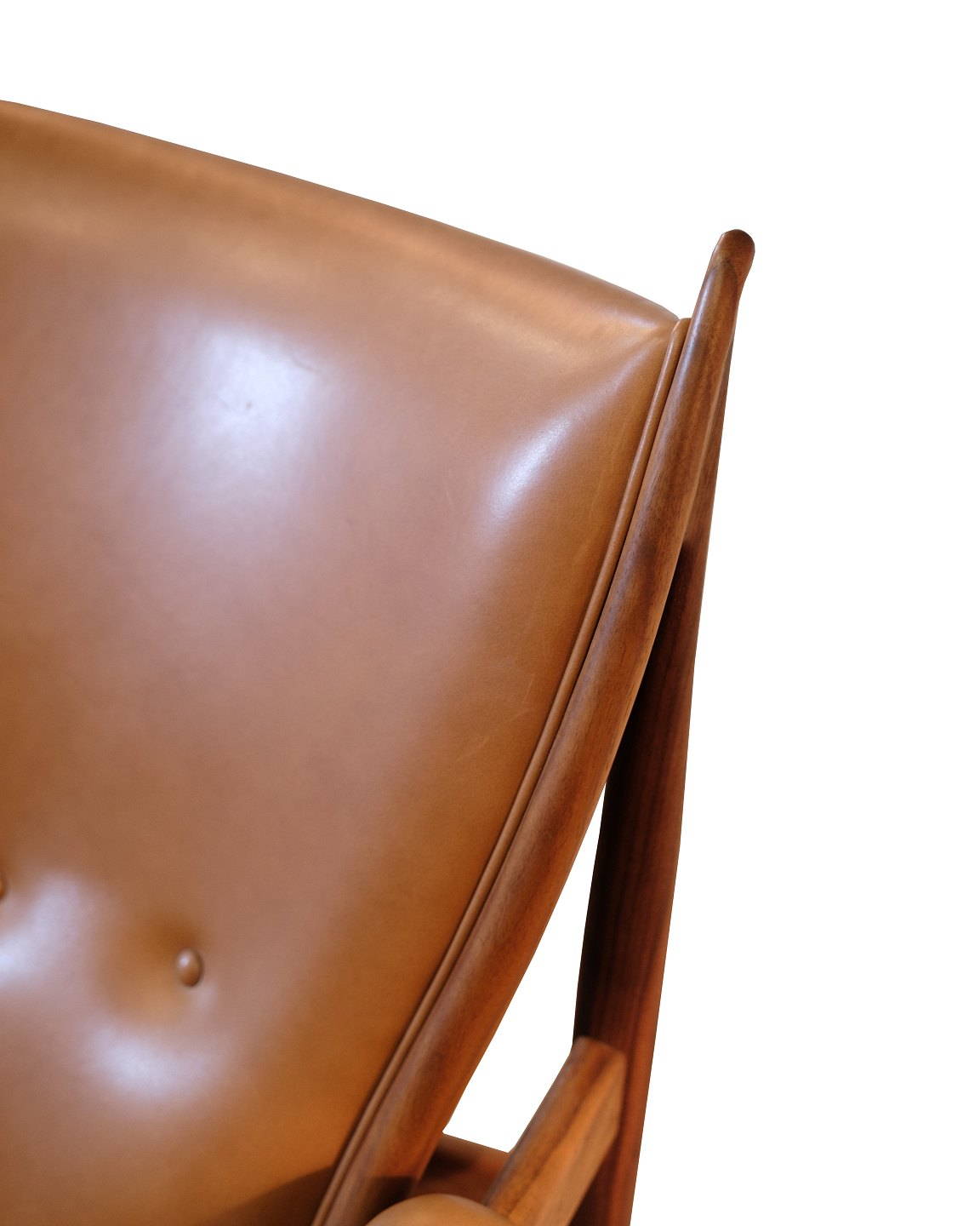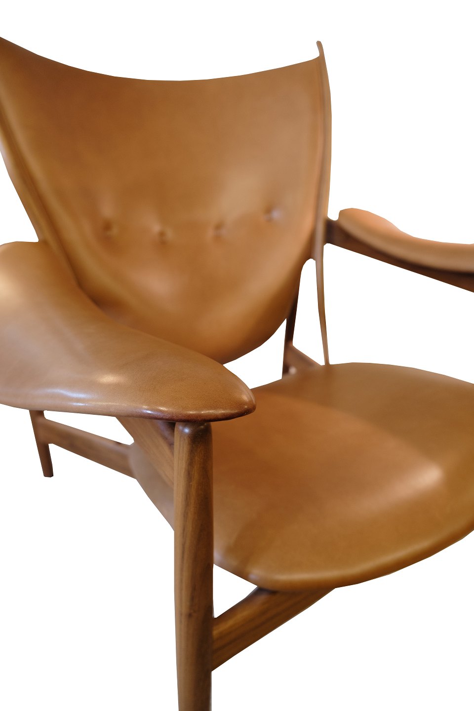 SoldDesigned by Finn Juhl in 1949, he invented the chief's chair as we know it today. Produced in walnut wood with cognac leather of the highest quality. The chair has an accompanying stool, which fits the chair in both wood and leather. The chair is made like a sculpture, due to the large size and beautiful details, which is also the reason for the English name "Chieftains Chair".