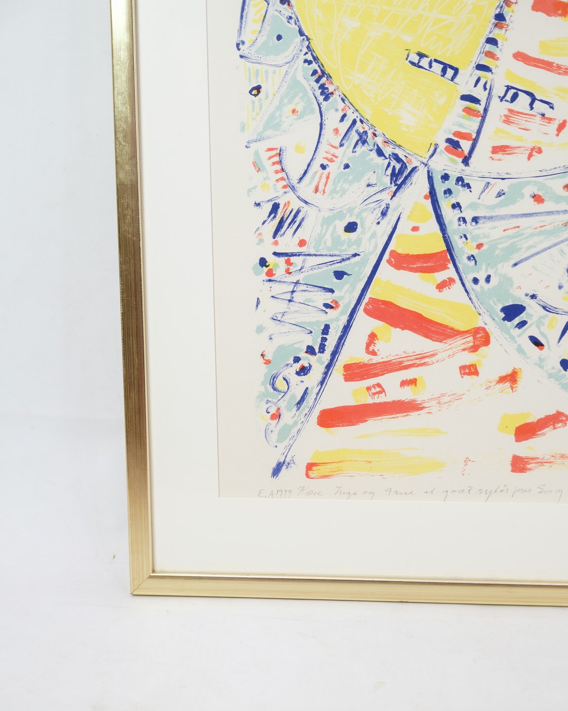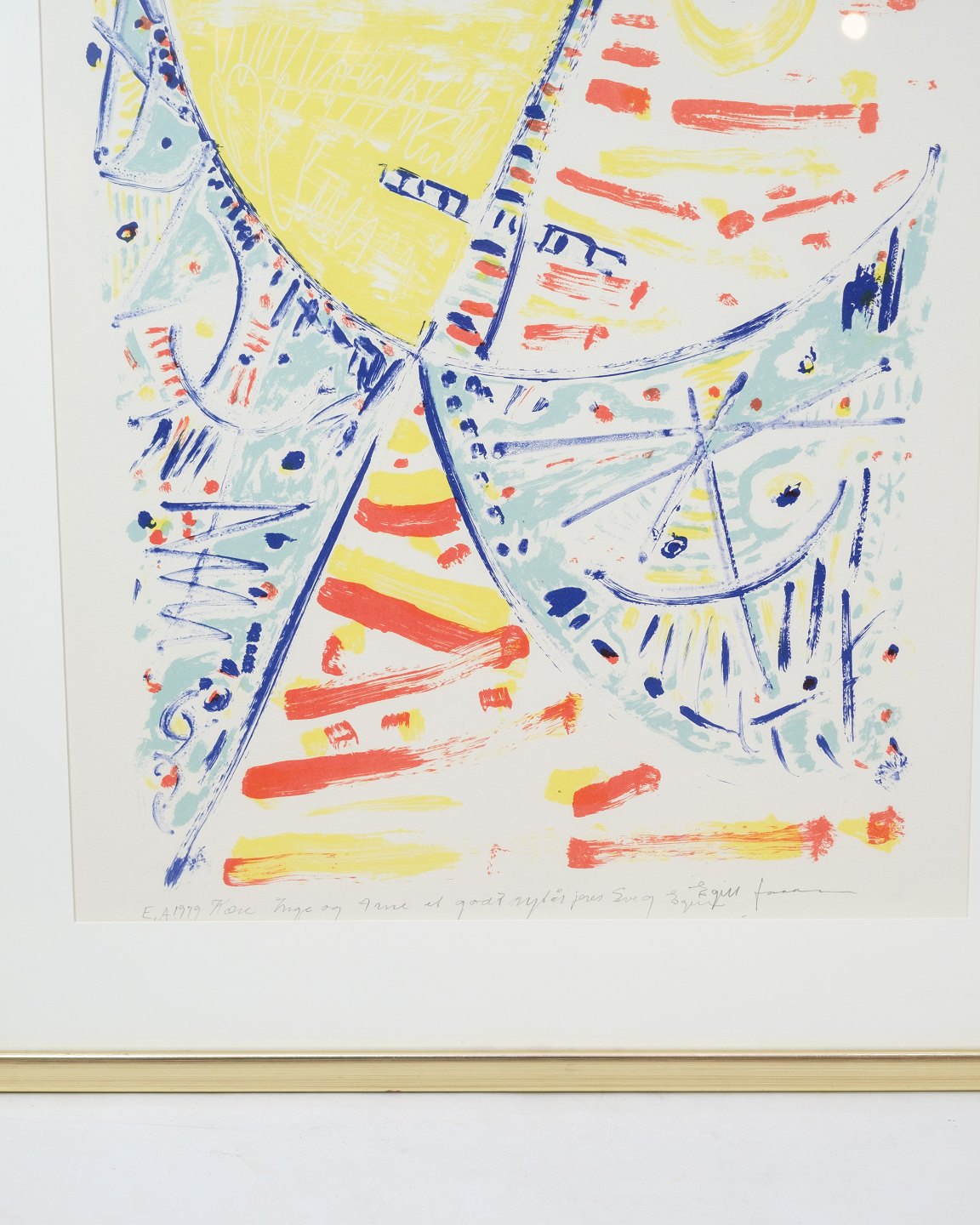 Dette litografi er skabt af Egil Jacobsen, en anerkendt dansk kunstner, der er kendt for sine farverige og ekspressive værker. Motivet er karakteristisk for hans stil med levende farver og abstrakte former, som balancerer mellem spontanitet og kontrol. Litografiet er indrammet i en elegant guldramme, der fremhæver værkets udtryk. Dette kunstværk er et smukt eksempel på moderne dansk kunst og passer godt ind i både klassiske og moderne indretninger.