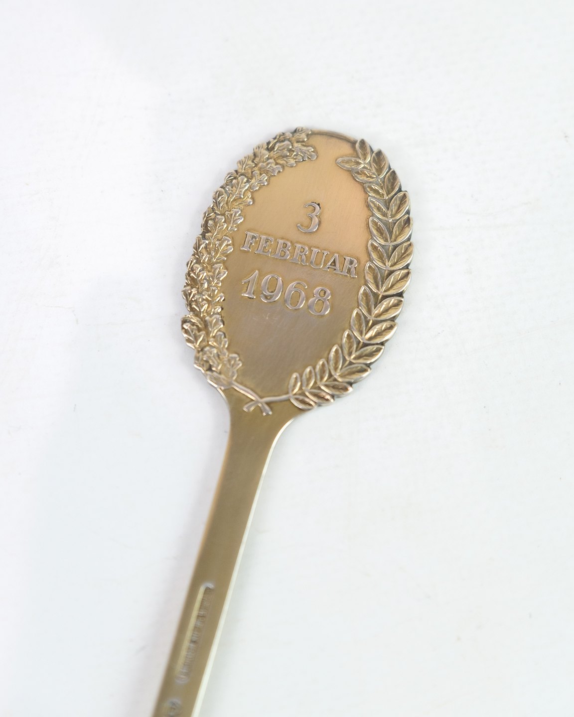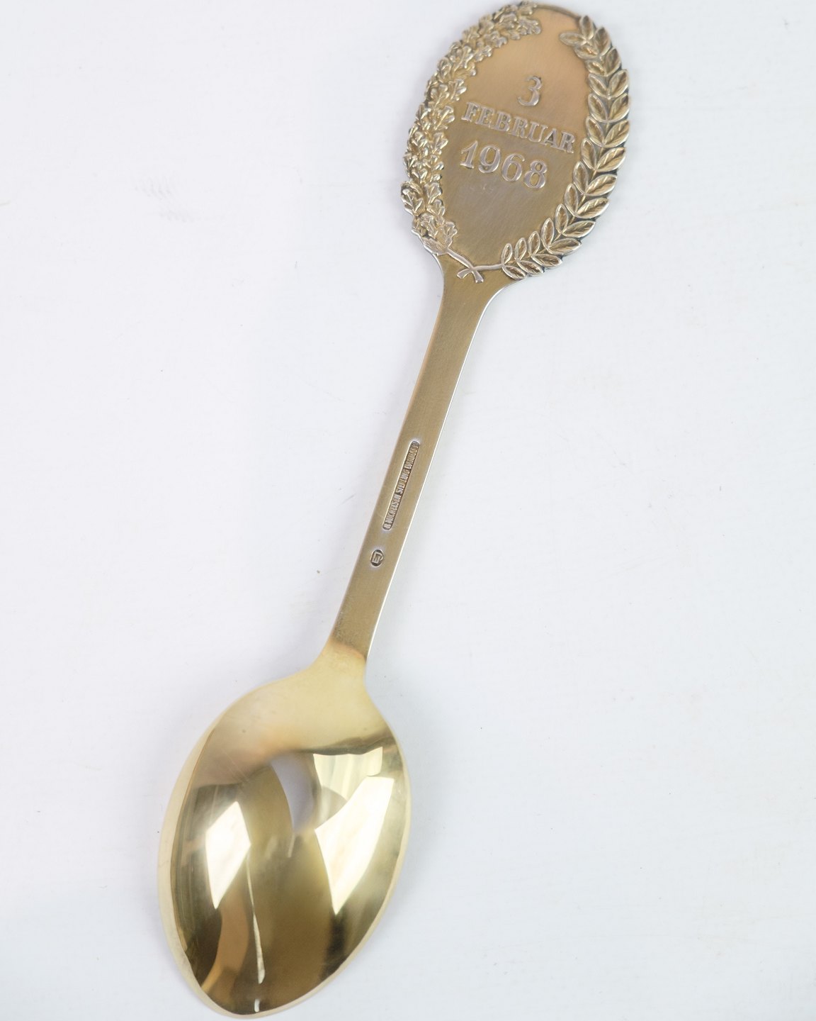 Anton Michelsen Mindeske lavet i forgyldt sterling sølv, designet af Egil Jensen fra 1968. Mindeskeen er lavet i Anledningen Af Prinsesse Benedikte & Prins Richards Bryllup d.3 Februar 1968.