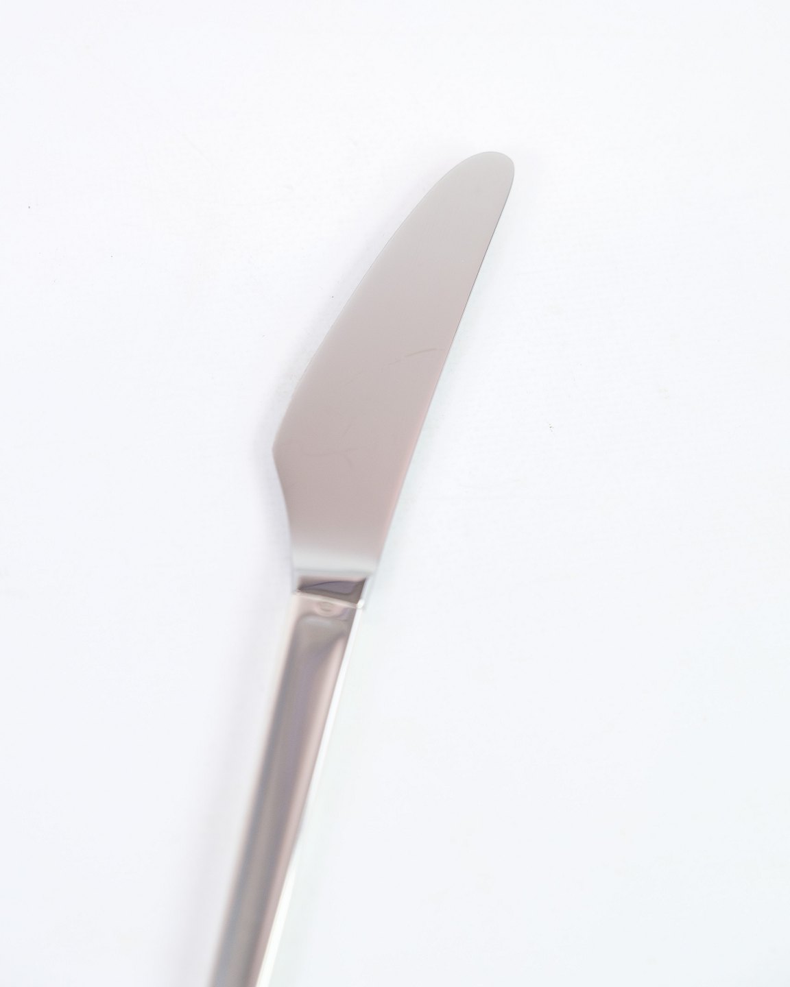 Fregat Spisekniven med takket skær lavet af sterling sølv. Spisekniven er en del af Fregat-Bestikserien og er designet af Magnus L. Stephensen og Fremstillet af Georg Jensen.