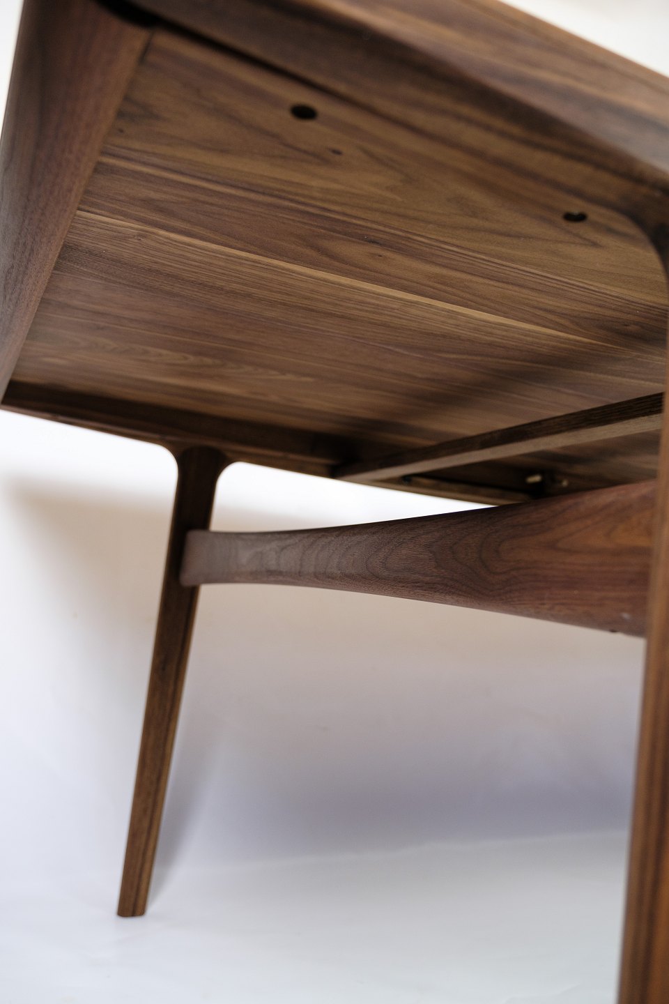 Kontakt os vedrørende prisEvermore spisebord, designet af Arne Hovmand-Olsen i 1955 og fremstillet af Warm Nordic, er udført i valnød og repræsenterer et klassisk eksempel på dansk designtradition. Bordet kombinerer tidens minimalistiske stil med organiske former, hvor de lette, afrundede kanter og slanke ben giver det et elegant og harmonisk udtryk.