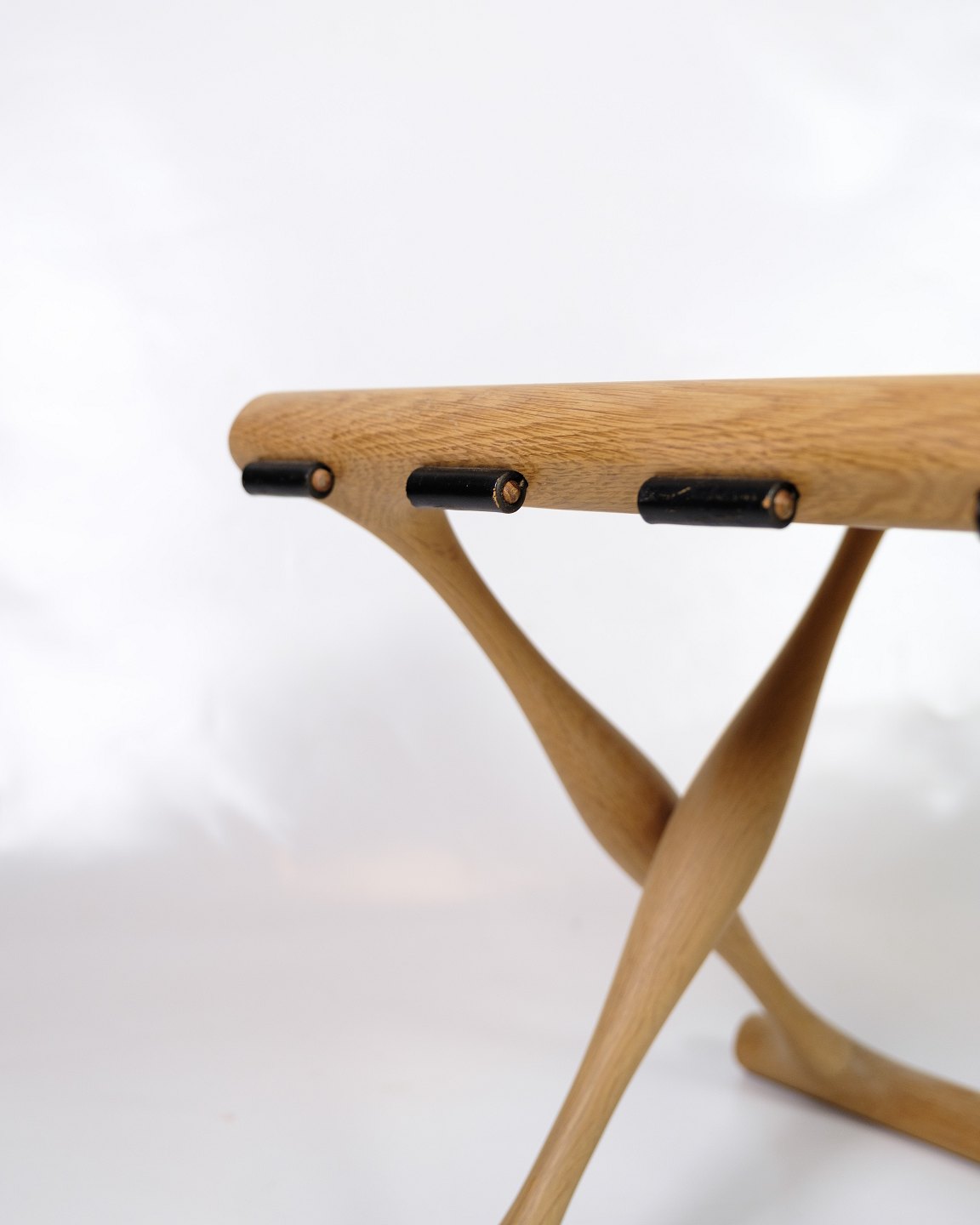 Taburet - Guldhøjstolen - Model PH 43 - Eg - Sæde Af Udspændt Sort Kernelæder - Poul Hundevad