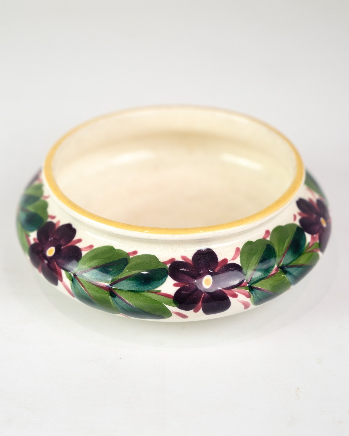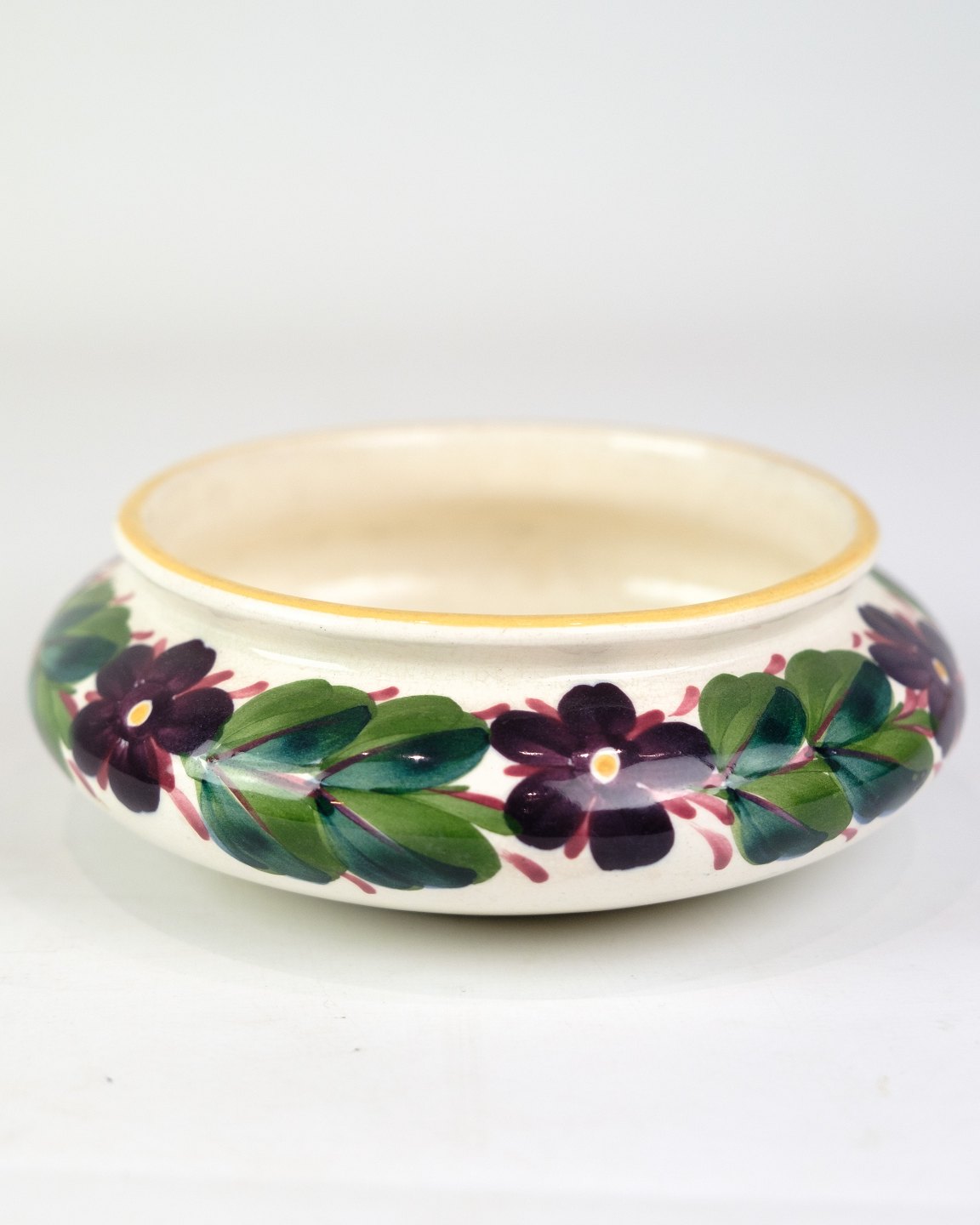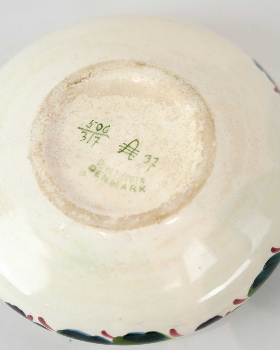 Denne fingerskål, model 506/317, er fremstillet i fajance og designet af den anerkendte danske kunstner Harald Slott-Møller. Skålen kombinerer kunstnerisk finesse med funktionelt design og bærer præg af Aluminia-fabrikkens karakteristiske håndværk og dekorative stil.