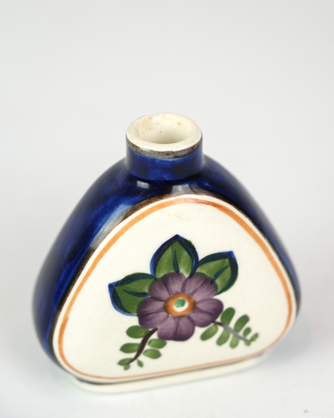Denne vase, model 1039/759, er fremstillet i fajance og dekoreret med et elegant blomstermotiv. Vasen kombinerer klassisk design med kunstneriske detaljer, hvilket gør den til en stilfuld og tidløs dekoration i hjemmet.