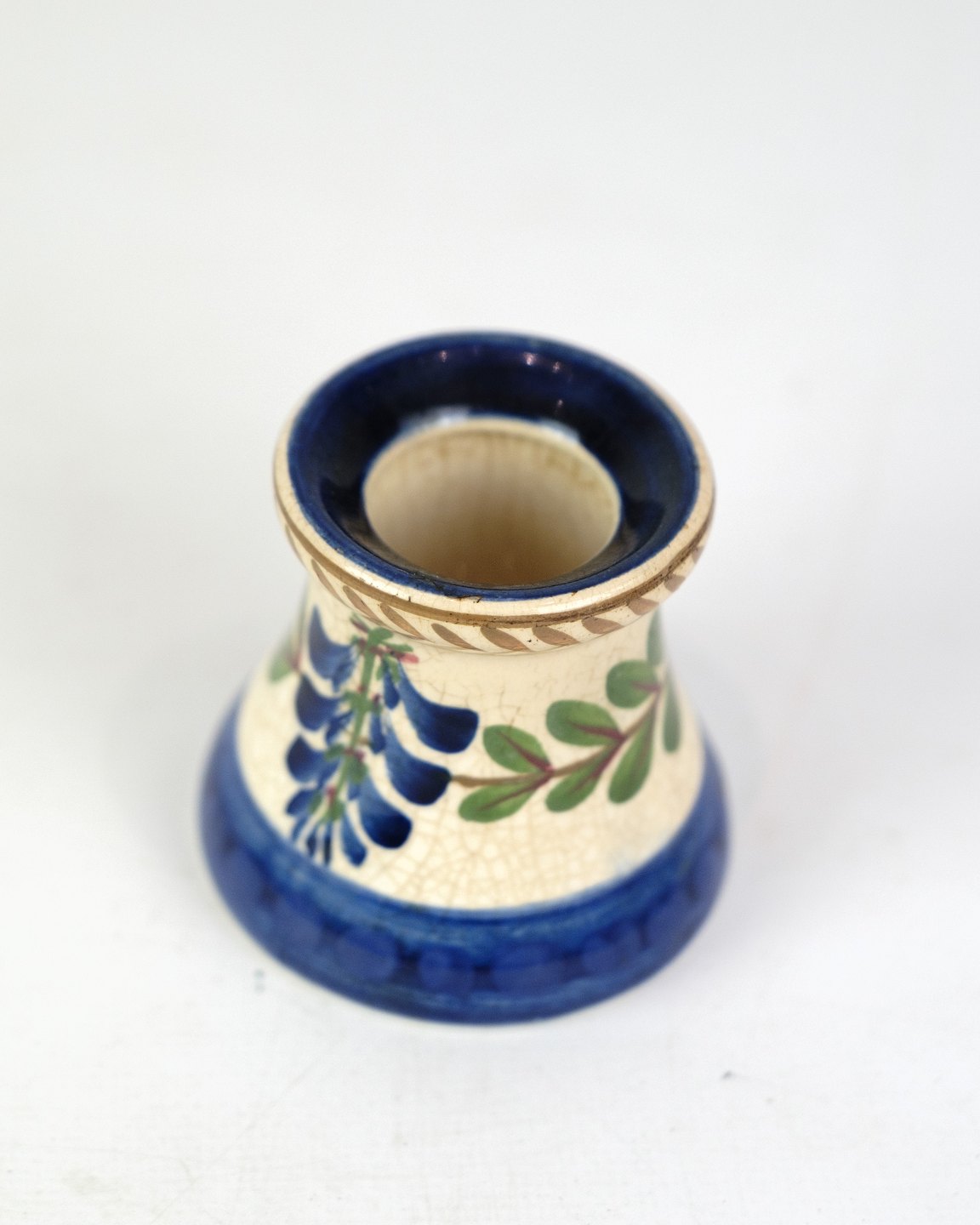 Denne lysestage, model 522/578, er fremstillet i fajance og smukt håndmalet med fine detaljer. Dens klassiske design og kunstneriske udførelse gør den til en dekorativ og funktionel genstand, der skaber en hyggelig atmosfære i hjemmet.