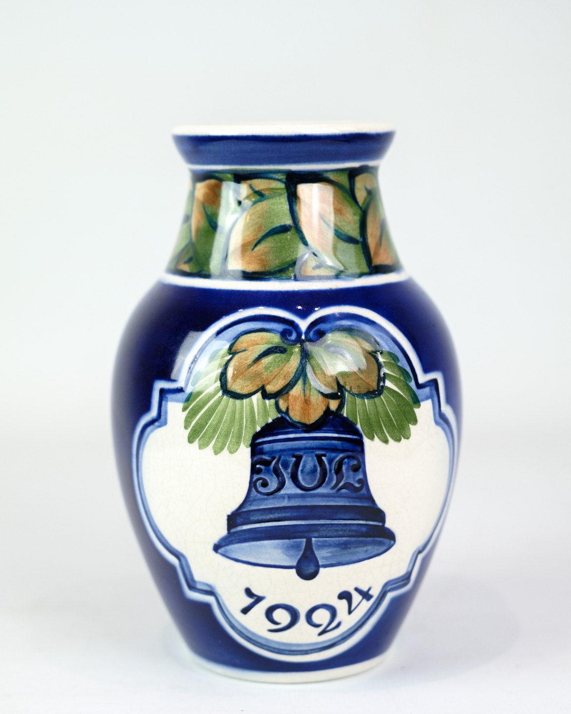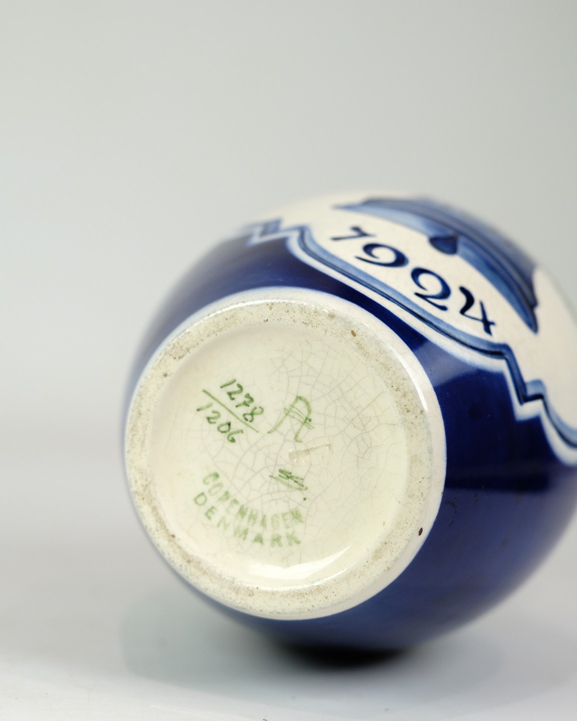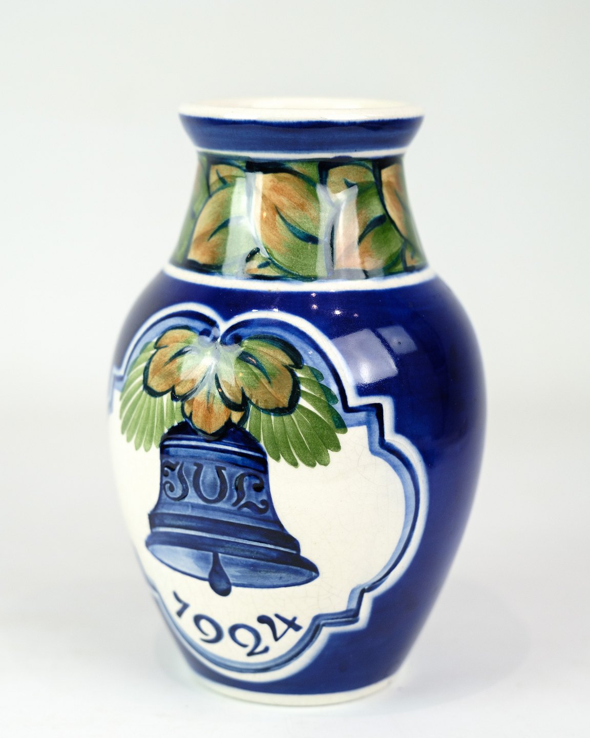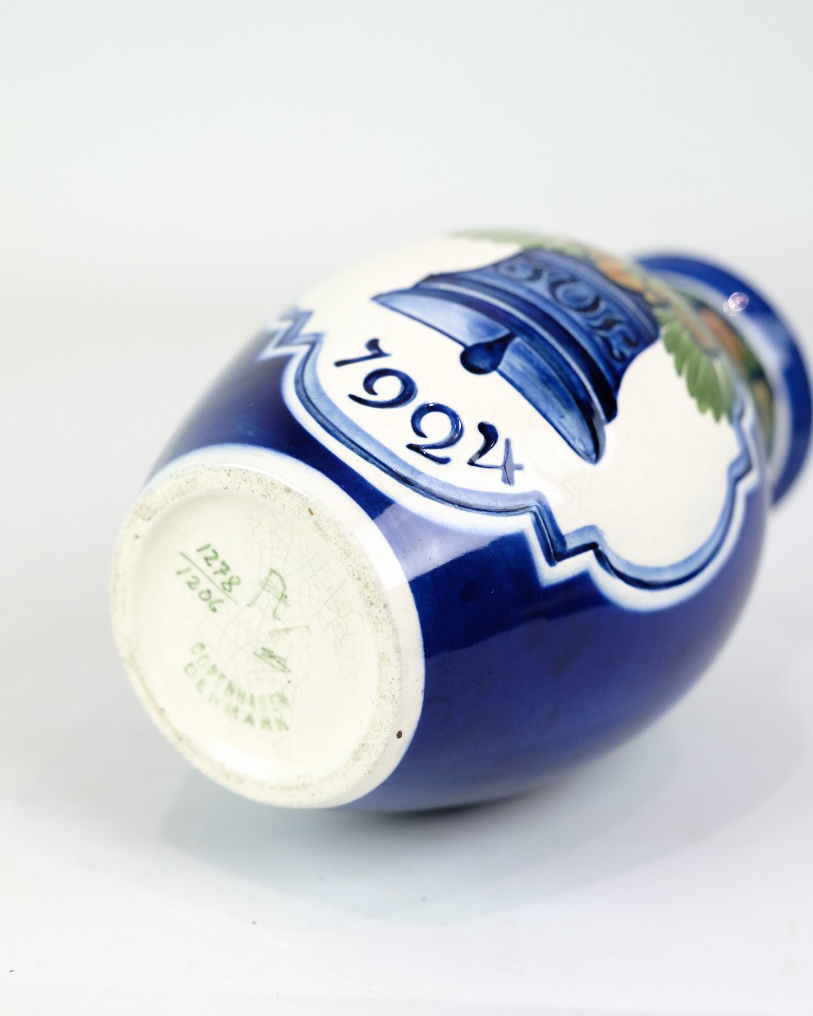 Denne julevase fra 1924, model 1278/1206, er fremstillet i fajance af Aluminia. Vasen har et klassisk og tidløst design, der indfanger julens stemning med sin dekorative og kunstneriske udførelse.