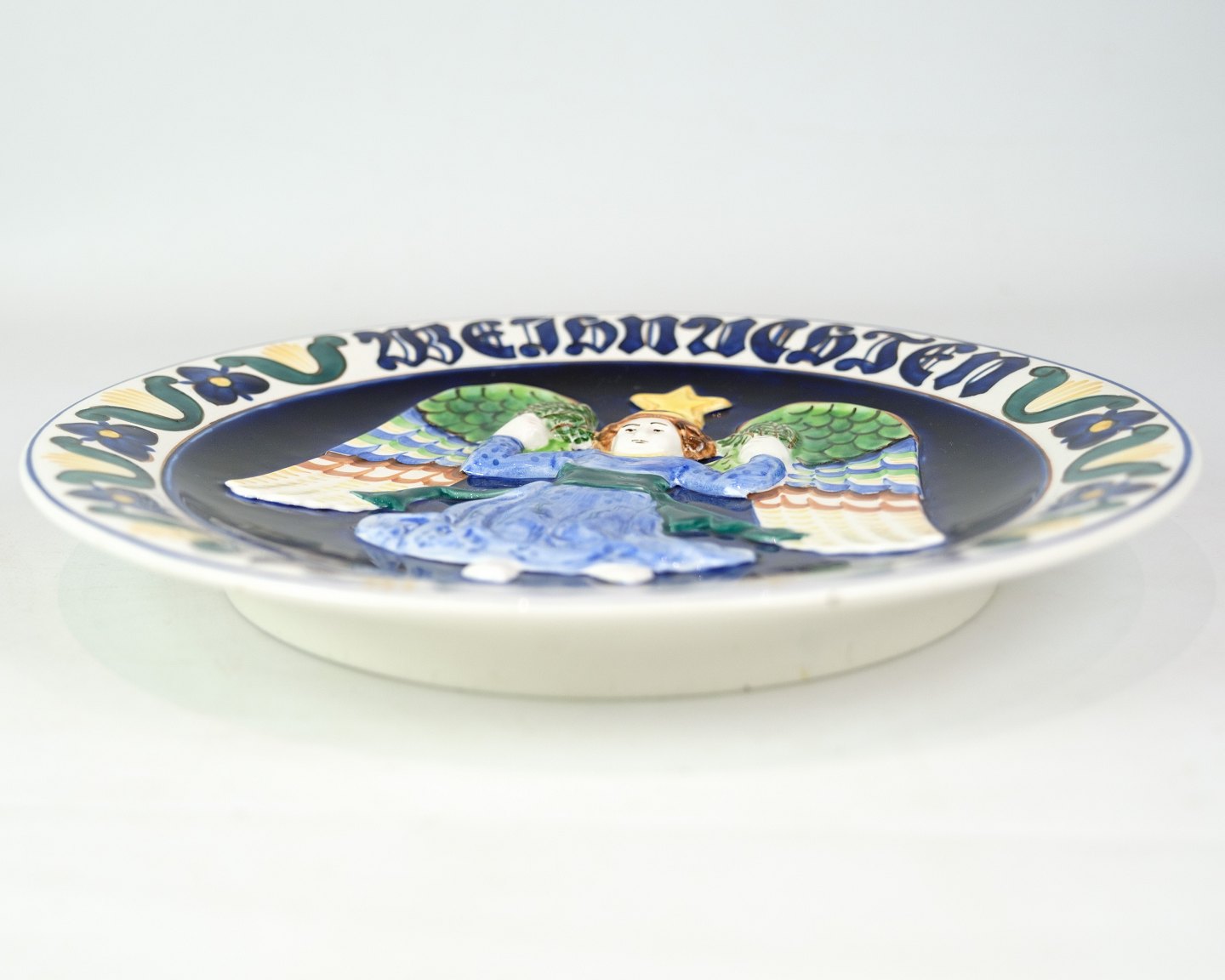 Denne juleplatte, model 974/792, er fremstillet i fajance af Aluminia og dekoreret med et elegant motiv af en engel. Plattten har et klassisk og stemningsfuldt design, der indfanger julens budskab og traditioner.