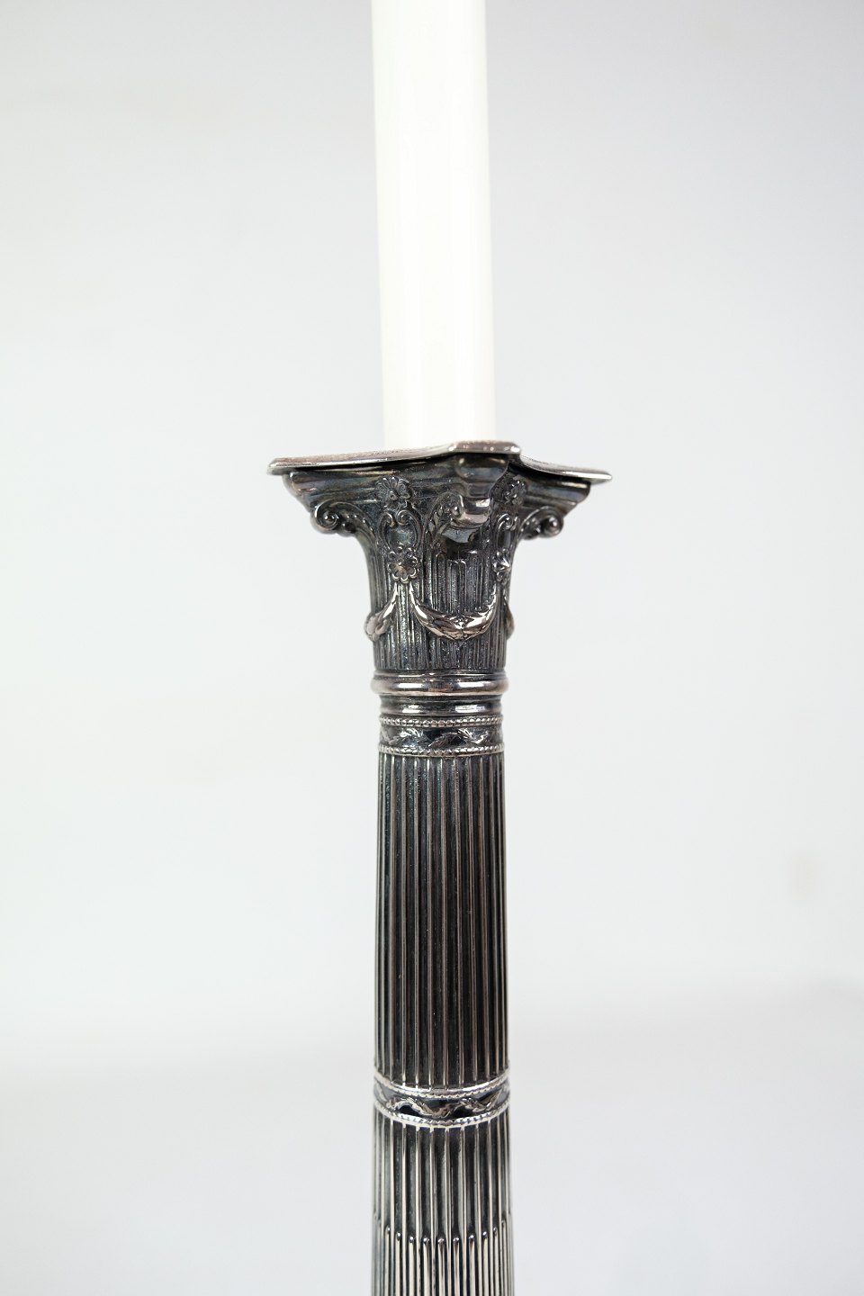 Sæt Af 2 Lysestager - Louis Seize Stil - Sterling Sølv 925 - Dekoreret Med Perlekant - Engelsk - 1920erne