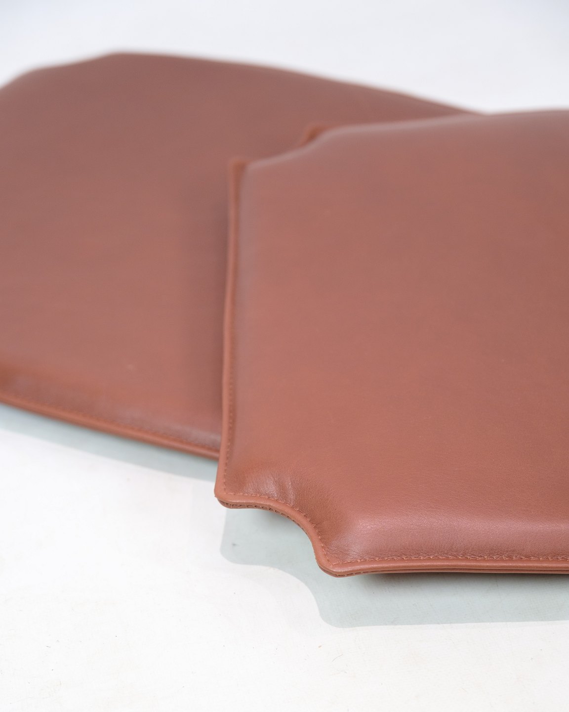 Sæt af 2 hynder i cognac læder, tilpasset efter Hans J. Wegner´s CH24 Y-stol. Hynderne øger komfort og beskytter sædet på stolen.