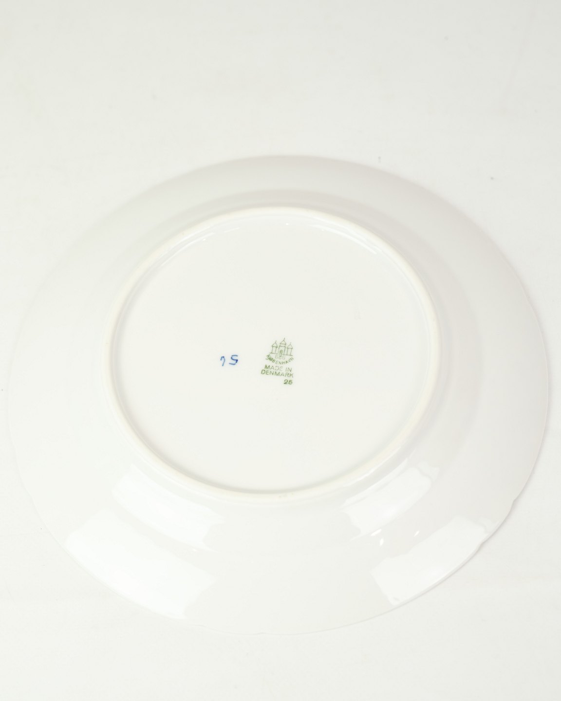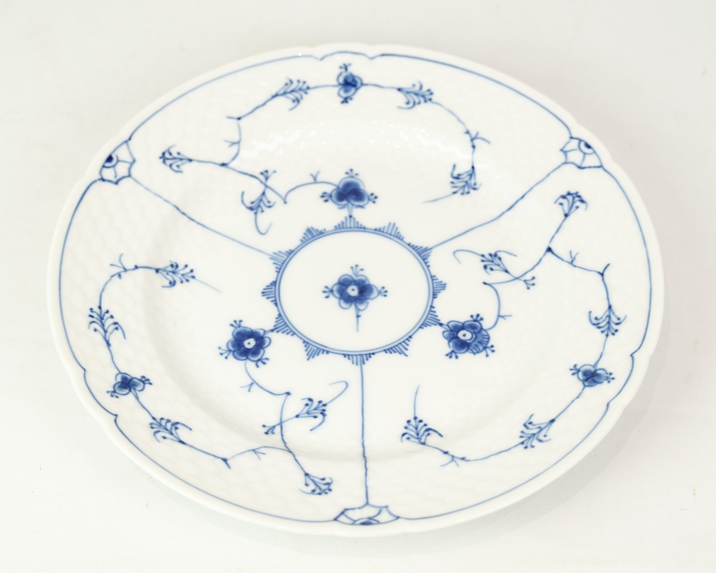 Middagstallerken nr. 025 fra Bing & Grøndahl. Fremstillet i porcelæn med klassisk blåmalet musselmalet dekoration.