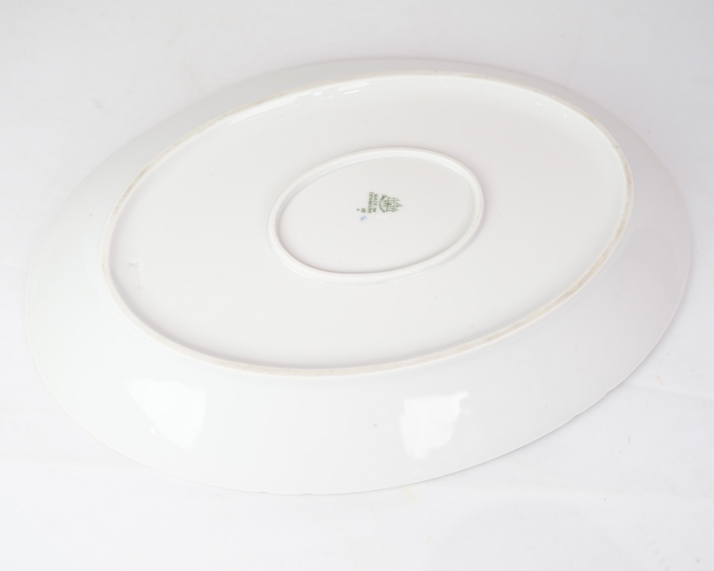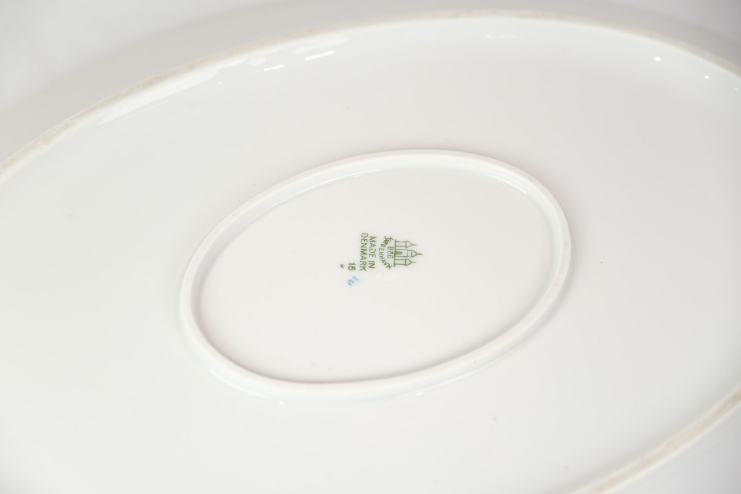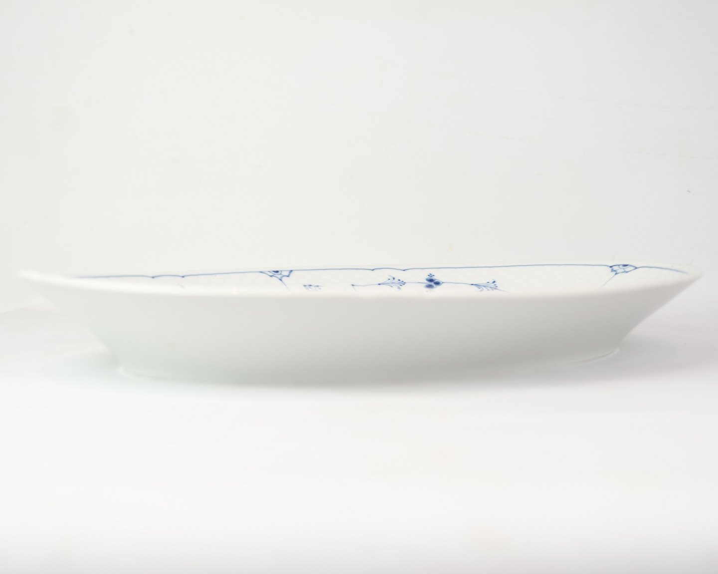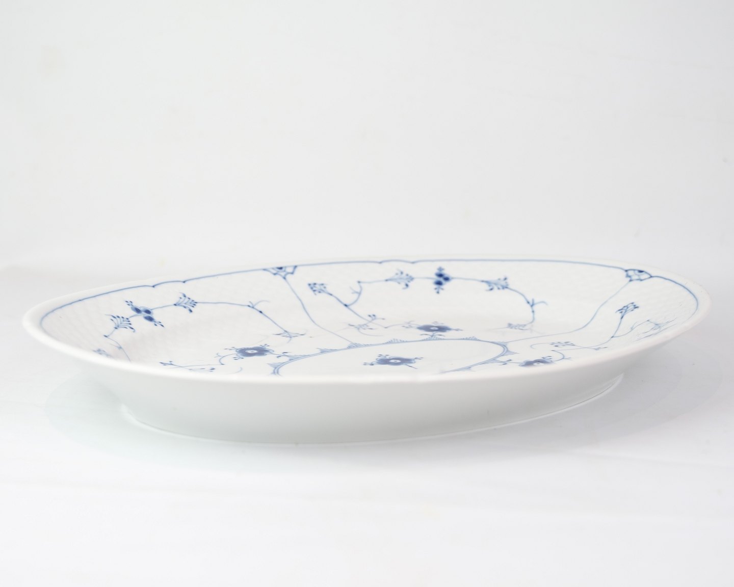 Oval dish no. 15 from Bing & Grondahl. Made of porcelain with classic blue fluting design in hand-painted blue decoration.