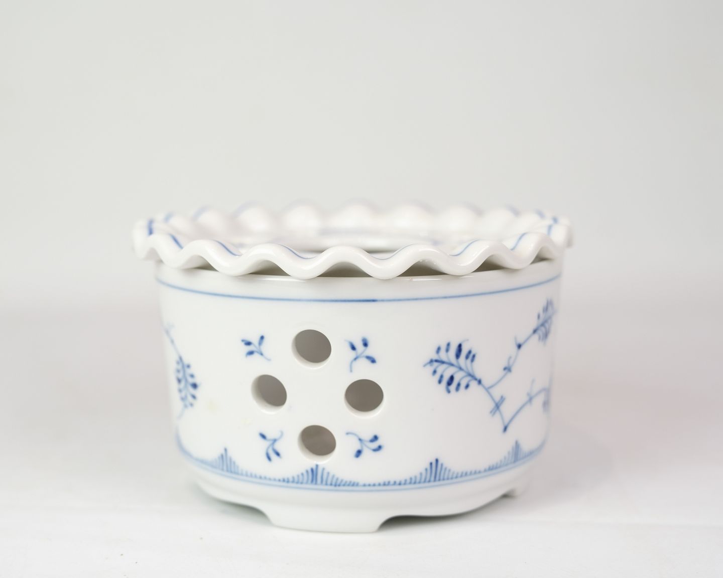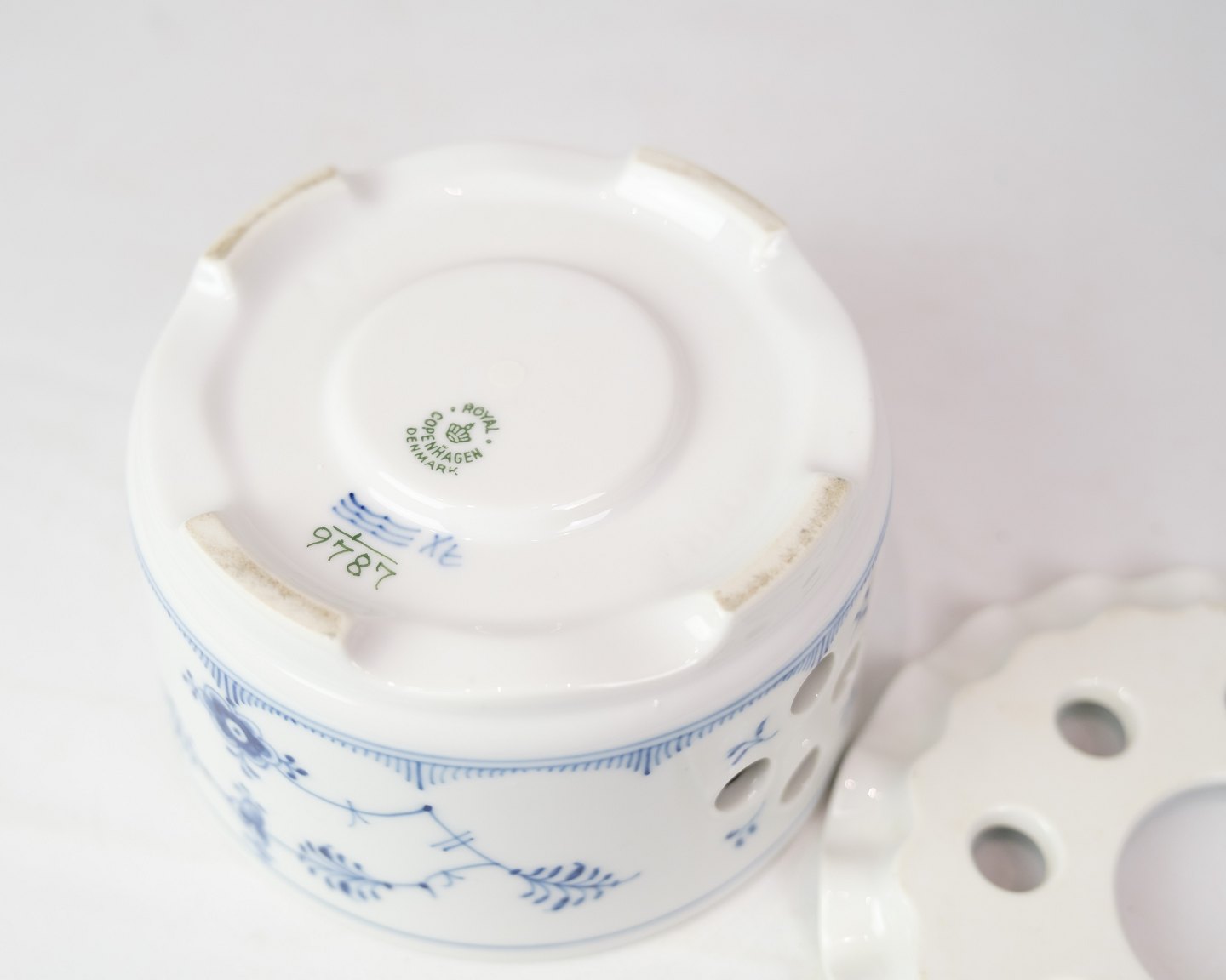 SolgtFyrfads varmer af Royal Copenhagen i mønstret Musselmalet riflet model nr. 1 /9787. fyrfadsvarmeren bruges til at holde enten te eller kaffekanden varm. Står i meget flot håndmalet stand.