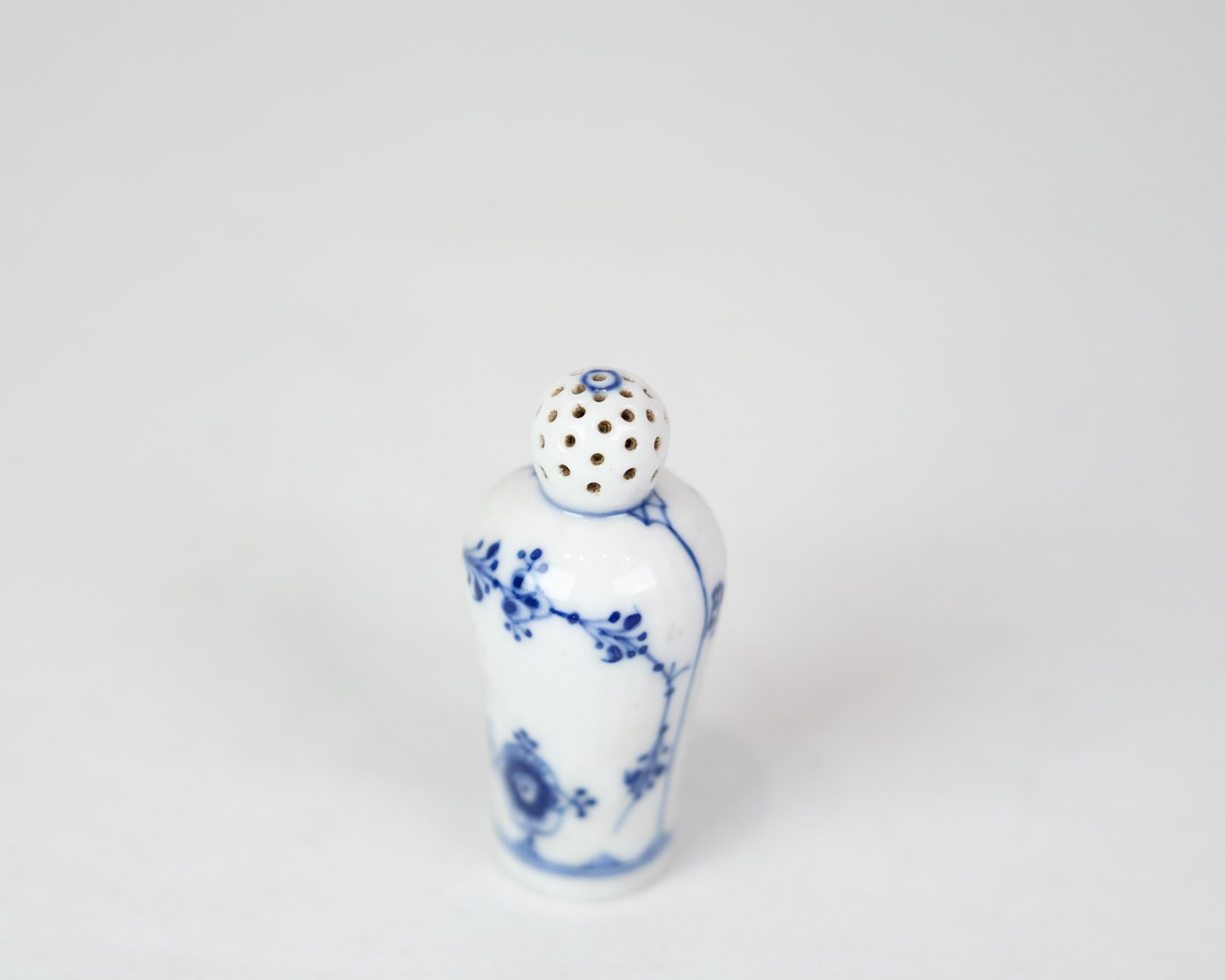 Pepper shaker of older date made by R&C in the pattern blue fluting fluted of older date. Appears to be model no. 439 without flaws and defects in a beautiful hand-painted pattern.