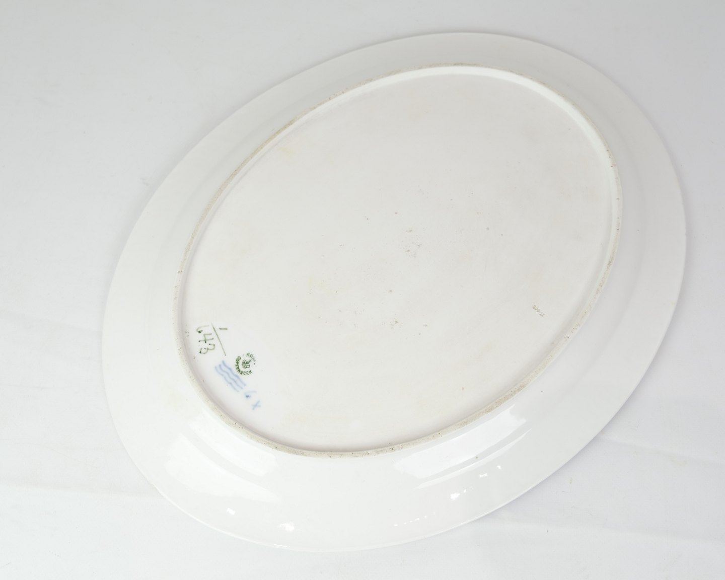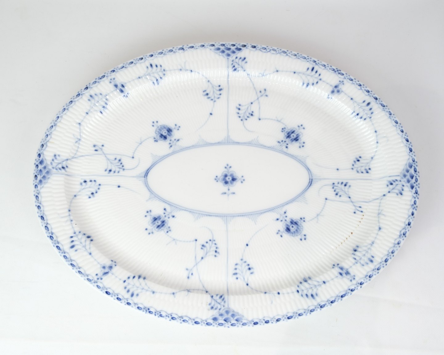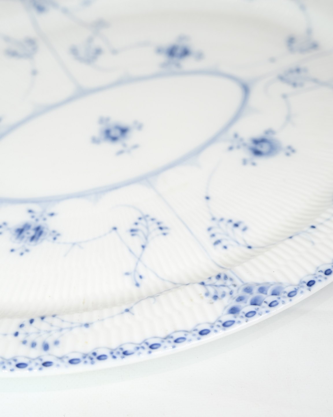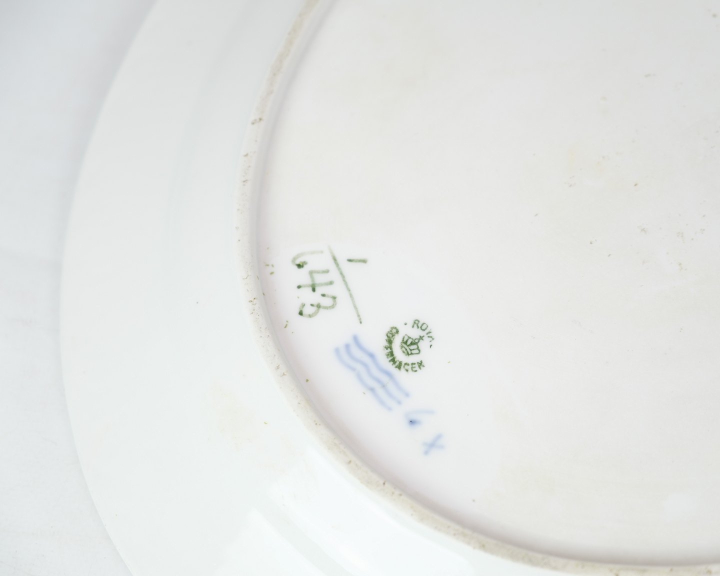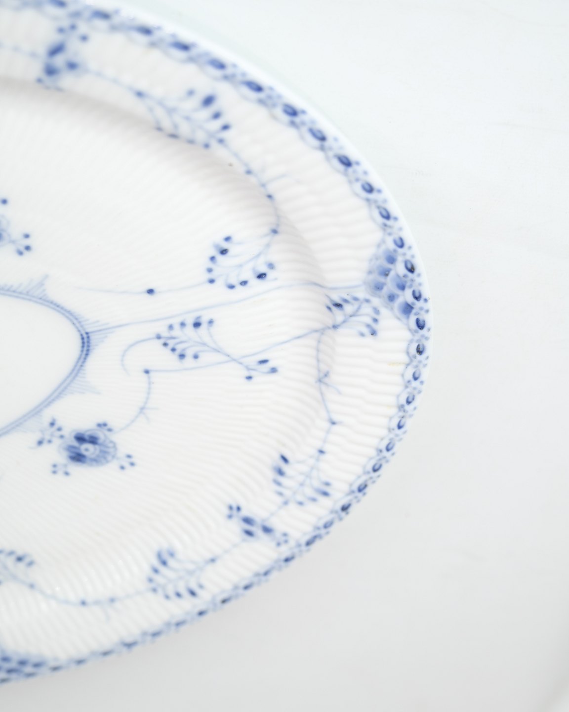Meget stort fad af R&C udformet i mønstret halvblonde musselmalet og har nr. 1 / 643. Dette fad er meget sjælent, da det er før 1923, hvilket man kan se på bølgerne bagpå.