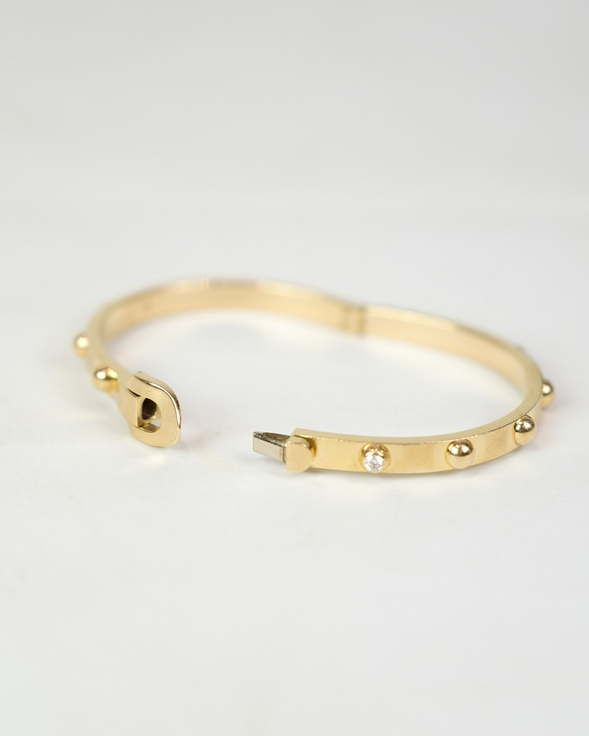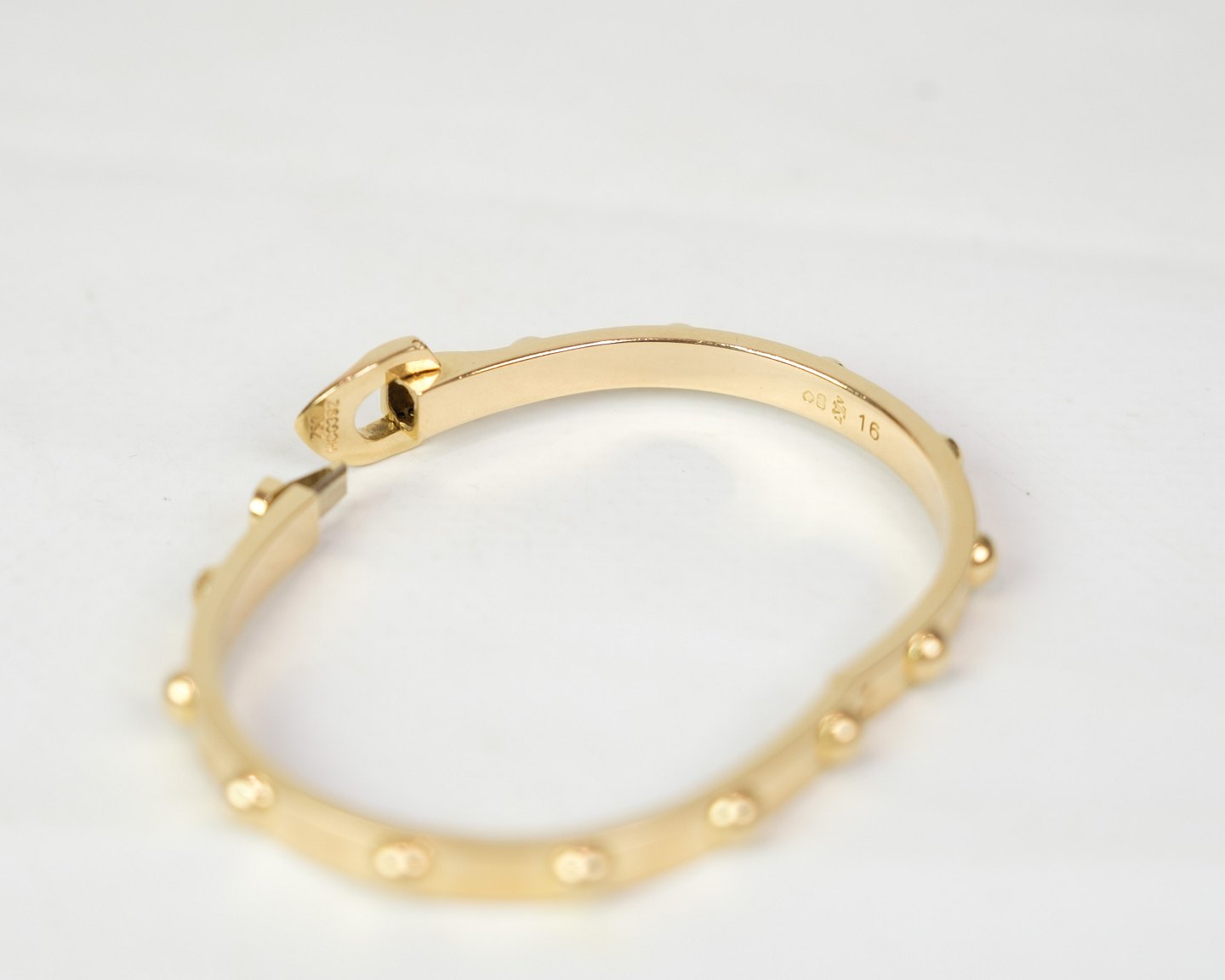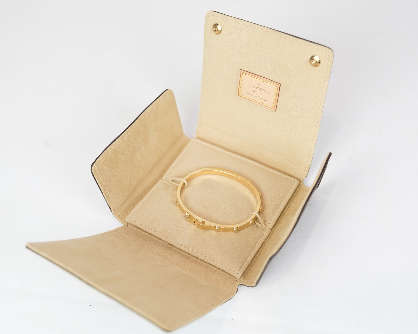 Please contact us for price information18 carat gold bracelet adorned with a diamond from Louis Vuitton made in France. The bracelet has 2 stamps 750 & 16, which indicate that the bracelet is made of 18 carat gold and the size.