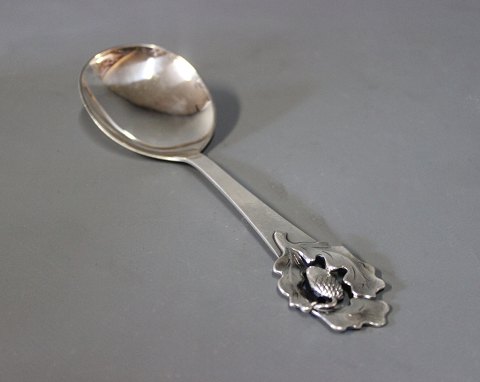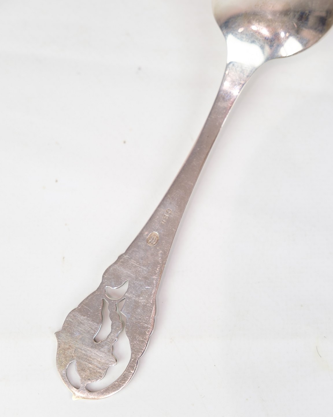 Hand-forged silver spoon with the stamp of C. BH and made of three-tower silver. The handle is decorated with elegant leaf and flower ornamentation