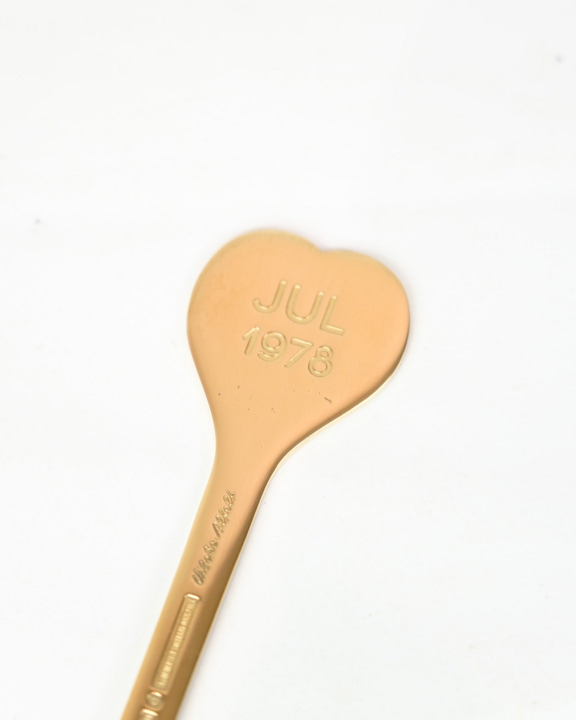 Juleske / års ske fremstillet af Anton Michelsen af forgyldt sterling sølv år 1978. Motiv på skeen er Solhverv og blev designet af Vibeke Alfelt.