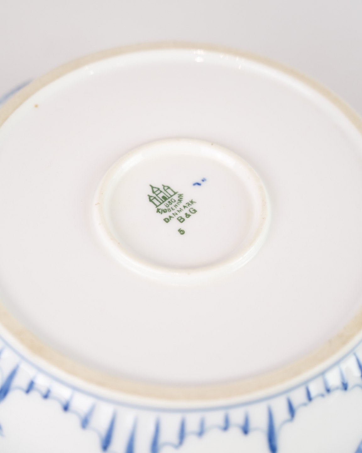 Terrin nr. 5 fra Bing & Grøndahl i klassisk musselmalet porcelæn. Dekoreret med håndmalet sommerfugl mønster og fine detaljer.