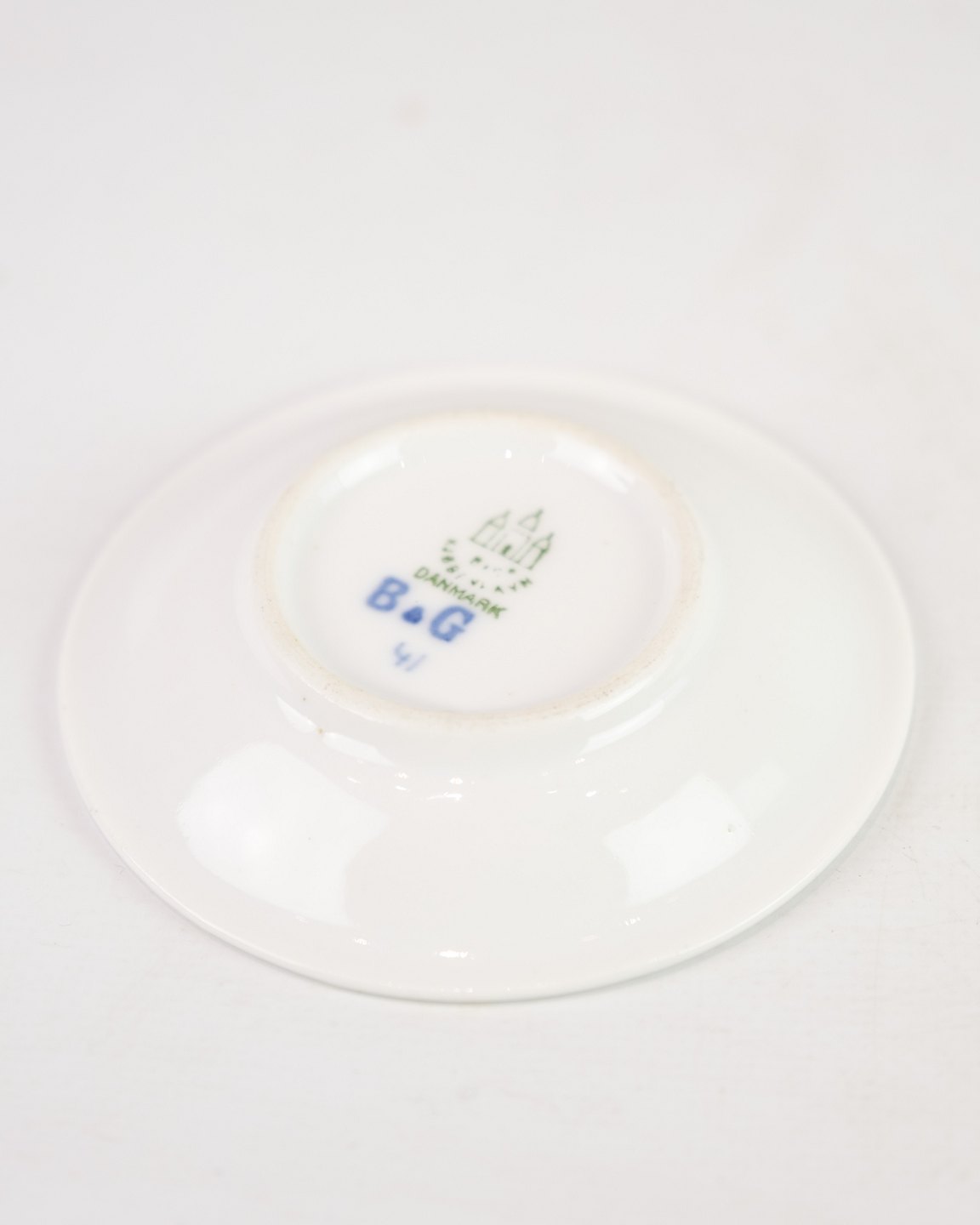 Lille smørekop/asiet, nr. 41, fra Bing & Grøndahl. Dekoreret med håndmalet sommerfuglmotiv. Porcelæn med stempel under bunden. Velegnet til servering eller som samlerobjekt.