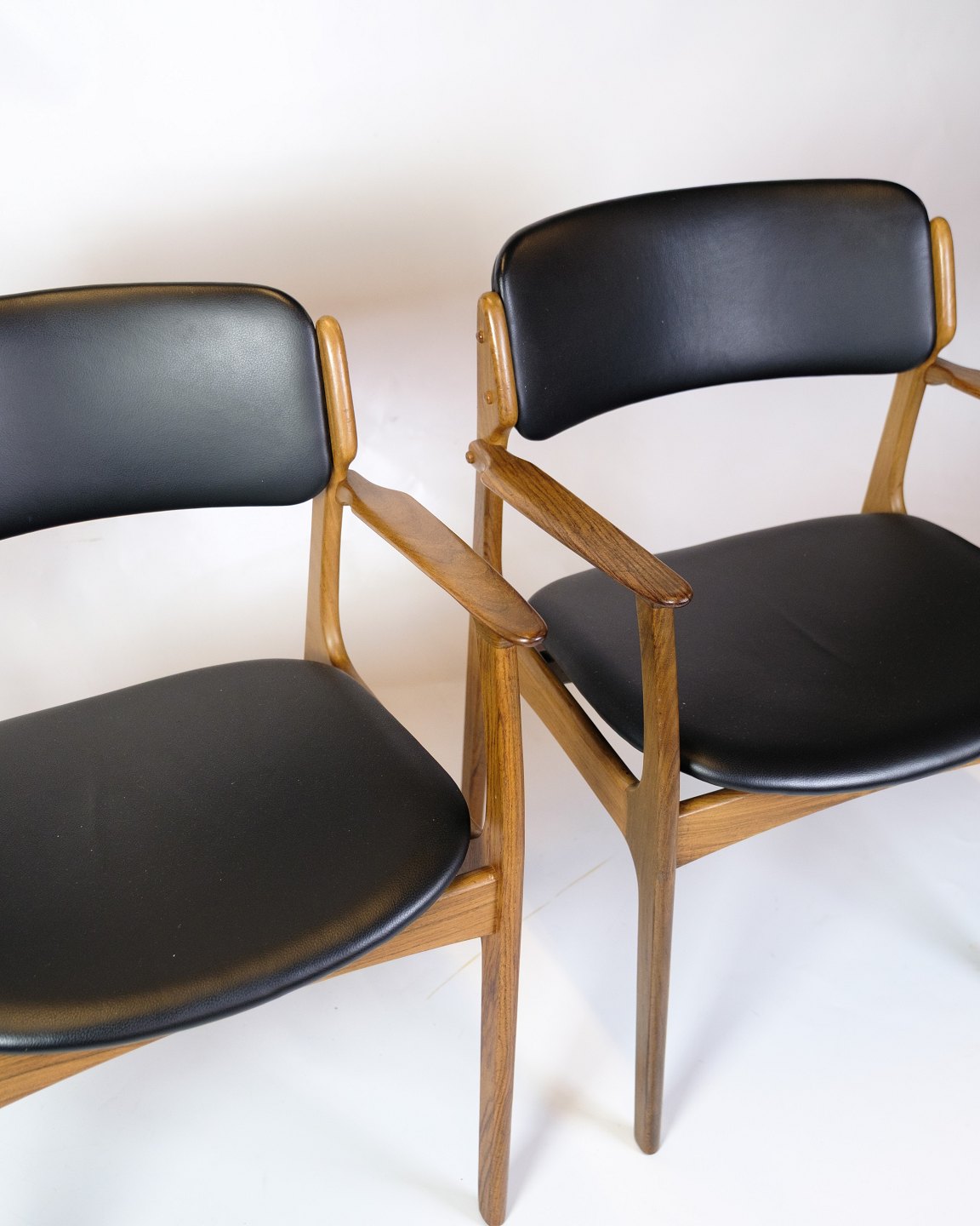 Sæt Af To Armstole - Model OD50 - Palisander & Sort Læder - Erik Buch - O.D Møbler - 1950erne